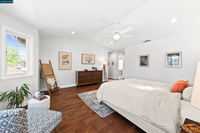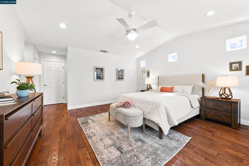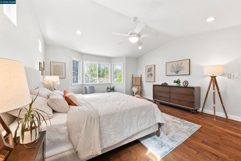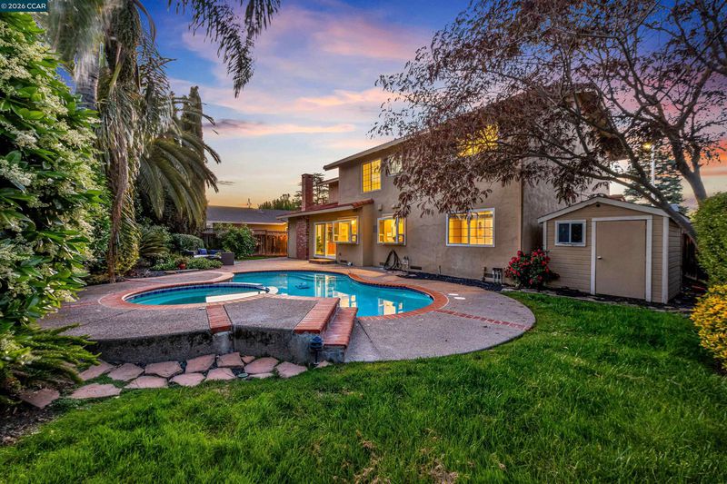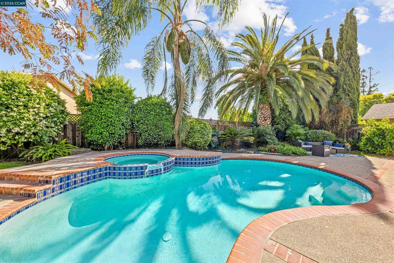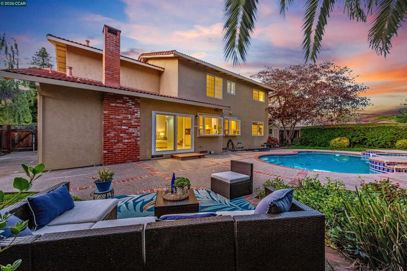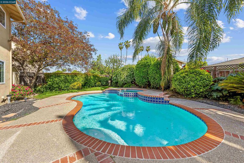 A home that just feels good the moment you arrive. Tucked at the end of a quiet cul-de-sac, 4844 Merganser Ct offers space, privacy, and a backyard that’s truly meant to be enjoyed. The yard is generous and beautifully landscaped, with a pool and spa that invite everything from slow weekend mornings to lively gatherings. A mix of paved patio and soft lawn gives you room to spread out, while mature trees and hedges create a sense of privacy that’s hard to find. The pool is equipped with a newer heater (2023), ready year-round. It’s the kind of outdoor space you actually use. A north-facing front door and covered porch create a calm, practical entry, with room for shoes, bags, or just a quiet pause before stepping inside. The main level is set up exactly how you’d want it: living room, dining area, kitchen, and family room all connected, with a half bath for convenience. It flows easily whether you’re hosting a crowd or just moving through your day. The kitchen looks out to the backyard and pool through a perfectly placed window, and features a walk-in pantry with shelving and a large, counter-depth KitchenAid fridge that gives a subtle, professional feel. Travertine tile floors in the kitchen and family room are both elegant and incredibly durable - ideal for indoor-outdoor living. Upstairs, all bedrooms and two full baths are tucked away, creating a clear separation between living and retreat. The primary suite stands out with vaulted ceilings, a generous footprint that easily accommodates a sitting area and multiple dressers, and a spacious bathroom with a walk-in shower for two, soaking tub, and dual vanity. The rest of the home features engineered wood flooring throughout (no carpet!) along with AC, a dedicated laundry room, and an attached two-car garage. Set in Pleasanton’s Birdland neighborhood, you’re close to top-rated schools, parks, and everything that makes the area so loved. Downtown Pleasanton with its charming cafés, restaurants, farmers market, and local shops, is just minutes away, along with easy access to commuting routes. A comfortable, well-located home with the kind of yard that’s hard to find… and even harder to leave.