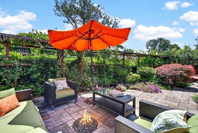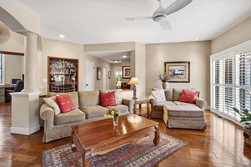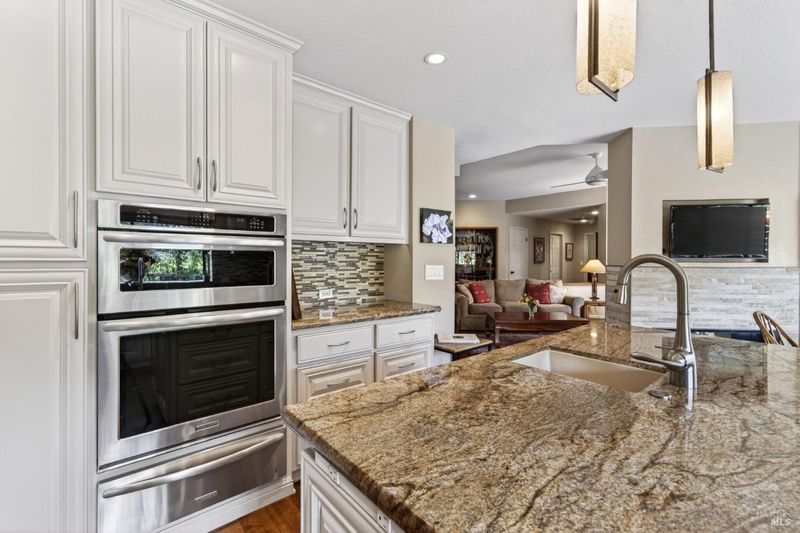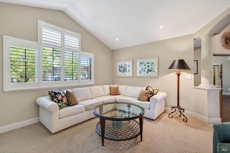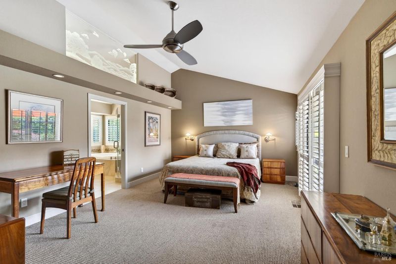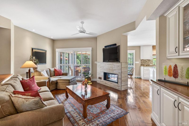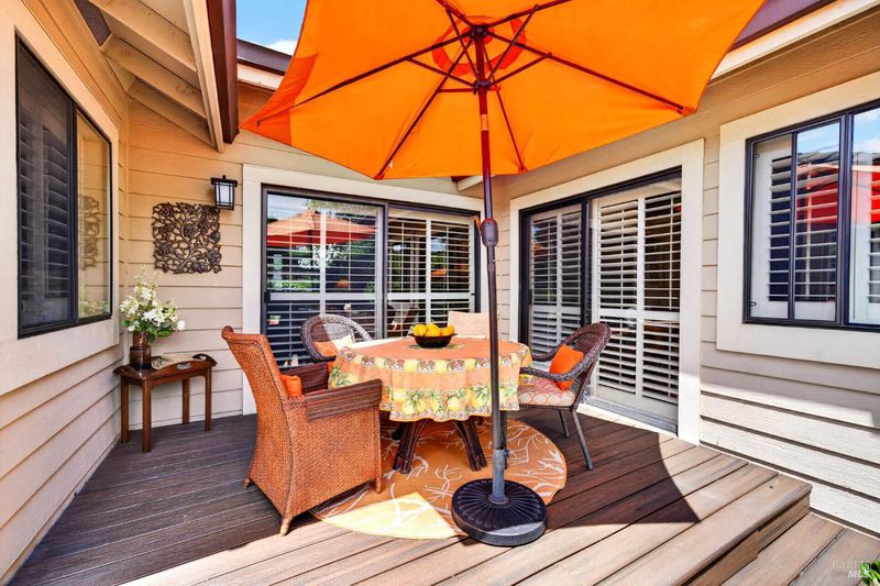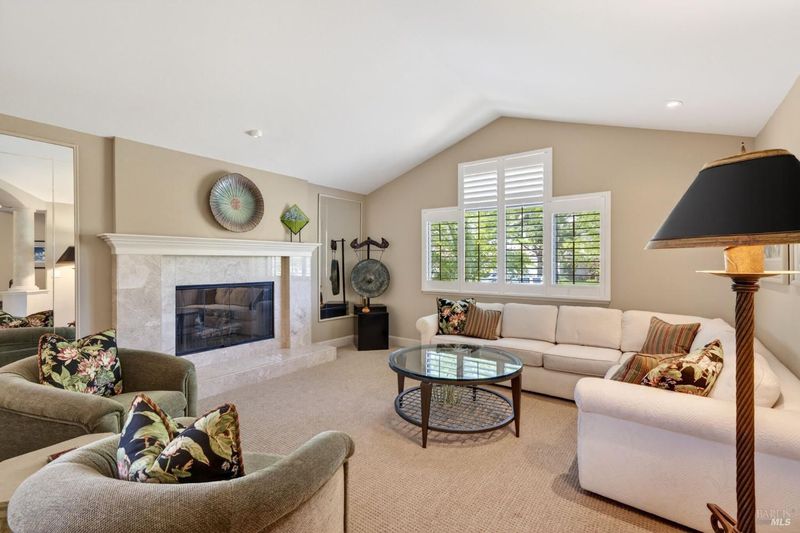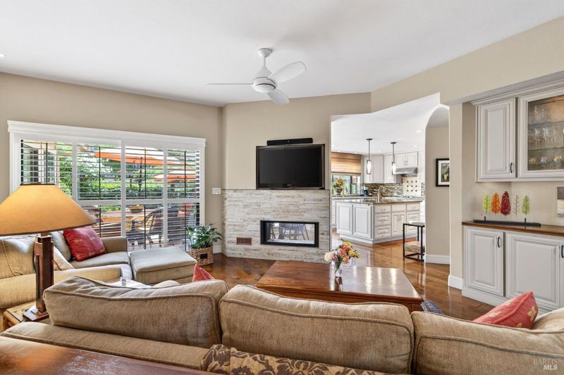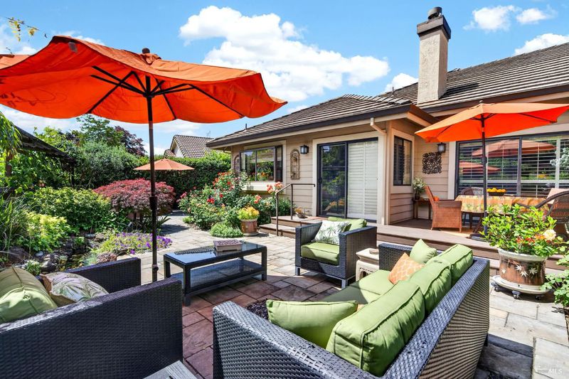 Step into relaxed Silverado living in this beautifully updated, single-level home offering comfort, style, and a prime location. This spacious residence features 3 bedrooms and 2 bathrooms across approximately 2,211 square feet, set on a generous 0.18-acre lot. The Beaujolais layout is designed for both everyday living and entertaining, the home boasts well-appointed kitchen complete with granite countertops & tiled backsplash, 2 sinks, stainless steel appliances, center island, and a sunny eating area. The spacious primary suite offers extra room for a workspace or relaxing and a bathroom complete with heated floors, soaking tub, walk-in shower and an oversize, fitted walk-in closet. The tastefully remodeled common bathroom showcases a custom glass countertop and tiled walk-in shower. Throughout the home, you will find engineered walnut flooring, plantation shutters, a two-sided fireplace and 3 glass features etched by Bill Empey. The multiple living spaces include a family room, living room with fireplace and a formal dining room providing flexibility and flow. The dedicated wine storage closet features a custom glass door adding a touch of Wine Country charm. Tucked in an interior location, the property backs to the greenbelt area and walking path, offering added privacy and a peaceful setting. The 2 car garage has extra storage and new flooring. The backyard is a true retreat, featuring a spacious deck and trellis, firepit, various fruit trees, and thriving vegetable gardens, perfect for relaxing or entertaining outdoors. Located in the desirable Silverado Springs neighborhood, residents enjoy access to community amenities including a pool and spa, tennis courts, scenic pond and walking paths. This is Napa and Silverado living at its best, single-level convenience, tasteful updates, and a setting that embraces the indoor-outdoor lifestyle.