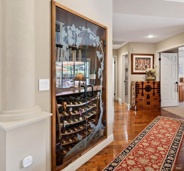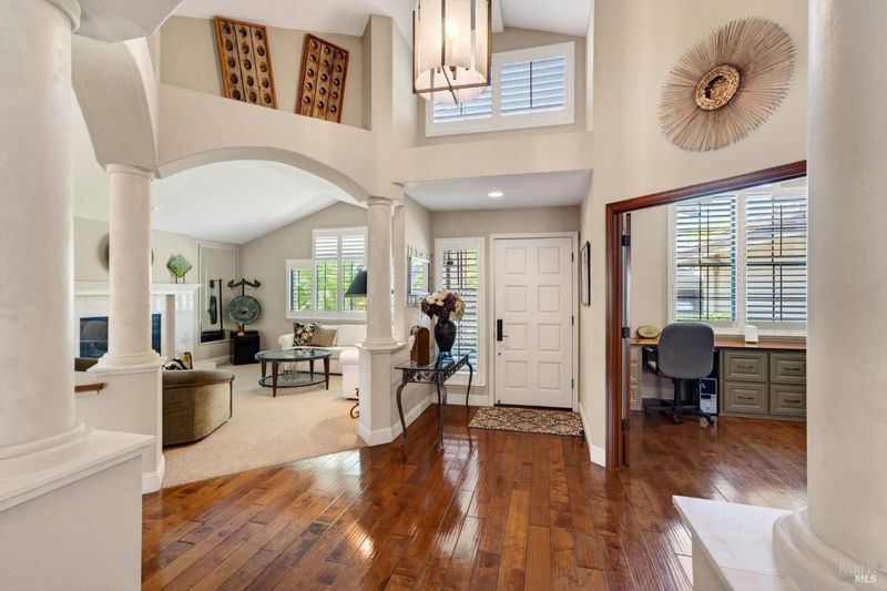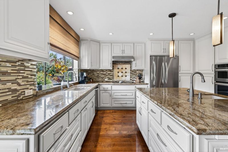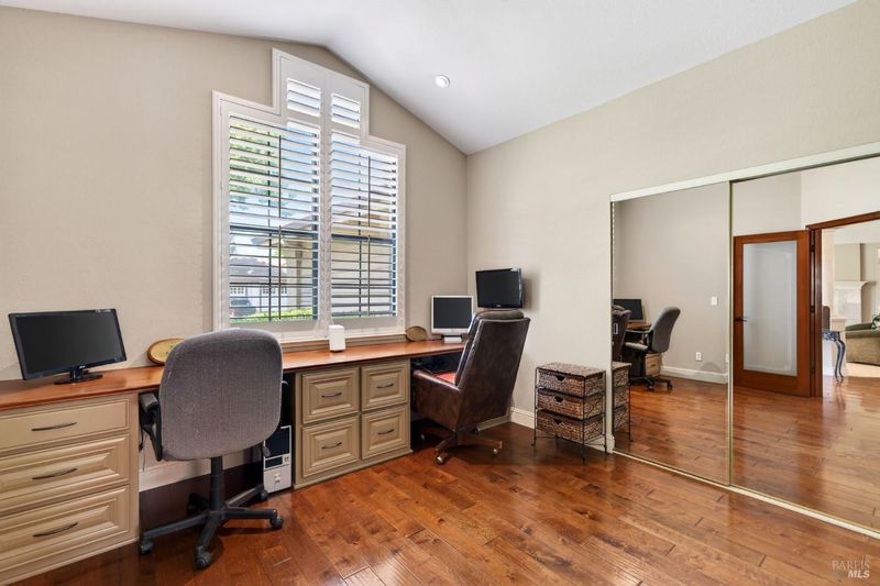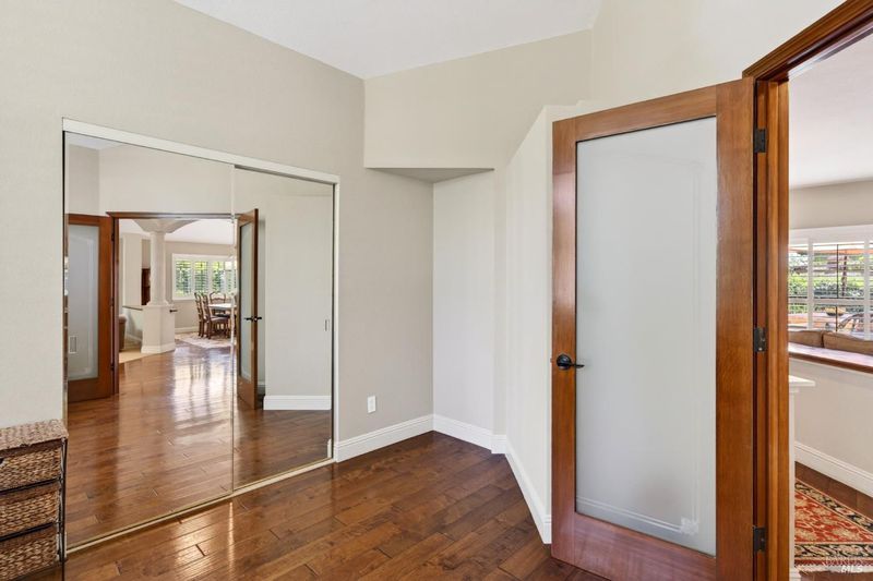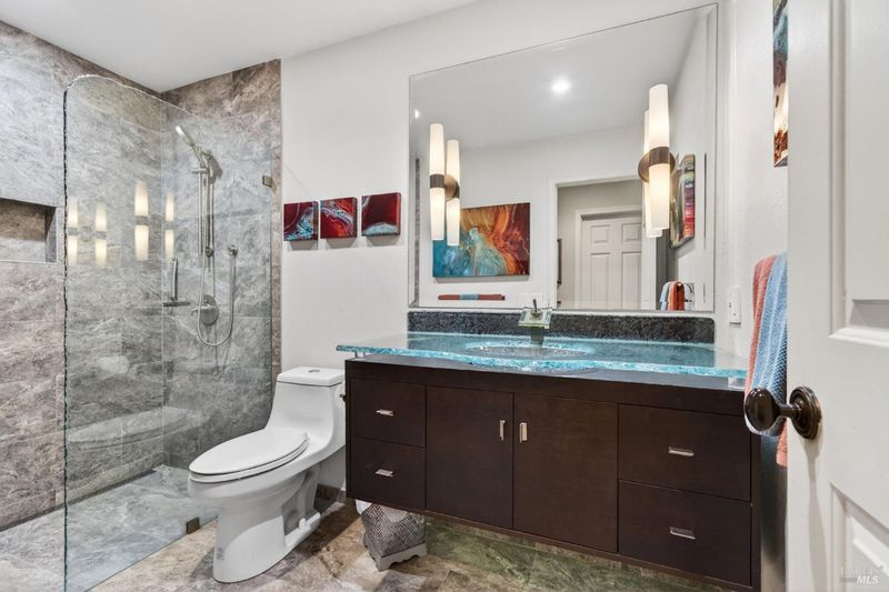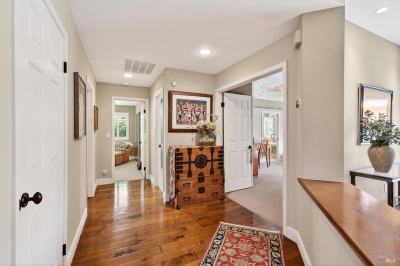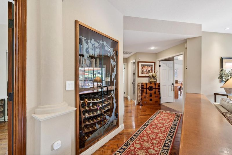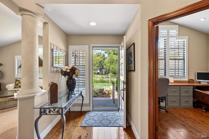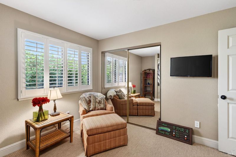 Step into relaxed Silverado living in this beautifully updated, single-level home offering comfort, style, and a prime location. This spacious residence features 3 bedrooms and 2 bathrooms across approximately 2,211 square feet, set on a generous 0.18-acre lot. The Beaujolais layout is designed for both everyday living and entertaining, the home boasts well-appointed kitchen complete with granite countertops & tiled backsplash, 2 sinks, stainless steel appliances, center island, and a sunny eating area. The spacious primary suite offers extra room for a workspace or relaxing and a bathroom complete with heated floors, soaking tub, walk-in shower and an oversize, fitted walk-in closet. The tastefully remodeled common bathroom showcases a custom glass countertop and tiled walk-in shower. Throughout the home, you will find engineered walnut flooring, plantation shutters, a two-sided fireplace and 3 glass features etched by Bill Empey. The multiple living spaces include a family room, living room with fireplace and a formal dining room providing flexibility and flow. The dedicated wine storage closet features a custom glass door adding a touch of Wine Country charm. Tucked in an interior location, the property backs to the greenbelt area and walking path, offering added privacy and a peaceful setting. The 2 car garage has extra storage and new flooring. The backyard is a true retreat, featuring a spacious deck and trellis, firepit, various fruit trees, and thriving vegetable gardens, perfect for relaxing or entertaining outdoors. Located in the desirable Silverado Springs neighborhood, residents enjoy access to community amenities including a pool and spa, tennis courts, scenic pond and walking paths. This is Napa and Silverado living at its best, single-level convenience, tasteful updates, and a setting that embraces the indoor-outdoor lifestyle.