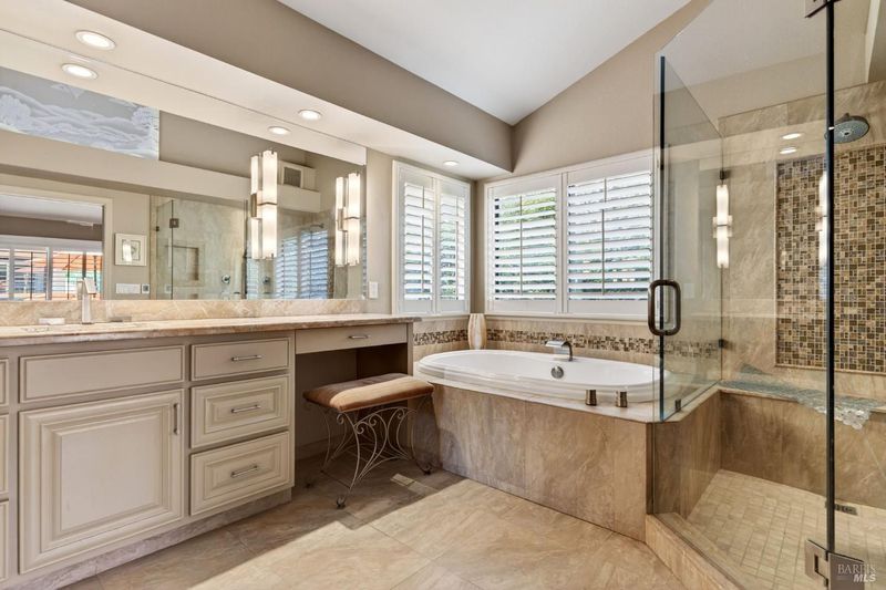 - Shower Stall(s), Soaking Tub, Tile, Walk-In Closet