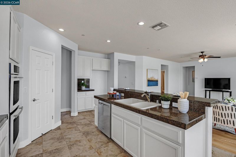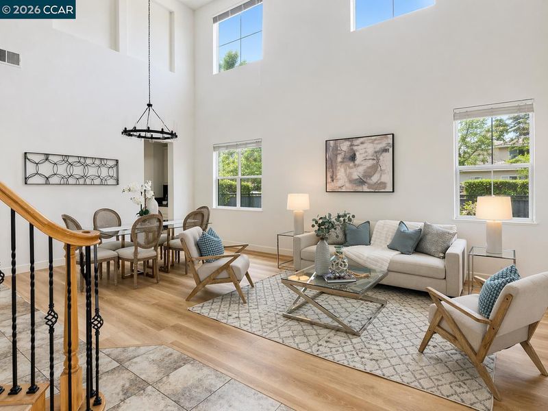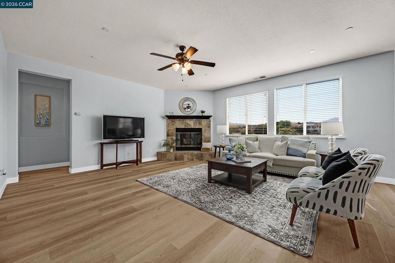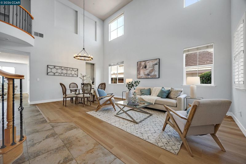 Commanding Mount Diablo views, modern upgrades, and a coveted Deer Ridge address — this stunning 5-bedroom, 3-bath home delivers 3,021 square feet of refined living just minutes from top-rated schools, shopping, restaurants, parks, and hiking trails. A grand entryway sets the tone, opening to soaring formal living and dining rooms bathed in natural light from dramatic two-story windows. The open floor plan flows seamlessly to the heart of the home: a chef's kitchen featuring a new 5-burner gas range, stainless steel dishwasher, and a generous island, all opening to the family room with its cozy fireplace and views of the backyard oasis. Fresh LVP flooring, new baseboards, new paint, updated lighting, and a newer AC unit complete the picture-perfect interior. The main level also offers a full bedroom and bath — ideal for guests, a home office, or multi-generational living. Upstairs, the luxurious primary suite is a true retreat, showcasing a walk-in closet and a private balcony with sweeping views of Mount Diablo. Three additional bedrooms and a spacious shared bath complete the upper level. Step outside to a private backyard designed for entertaining: a large patio, lush lawn, and beautiful landscaping create a serene escape with no rear neighbors. Welcome home.
