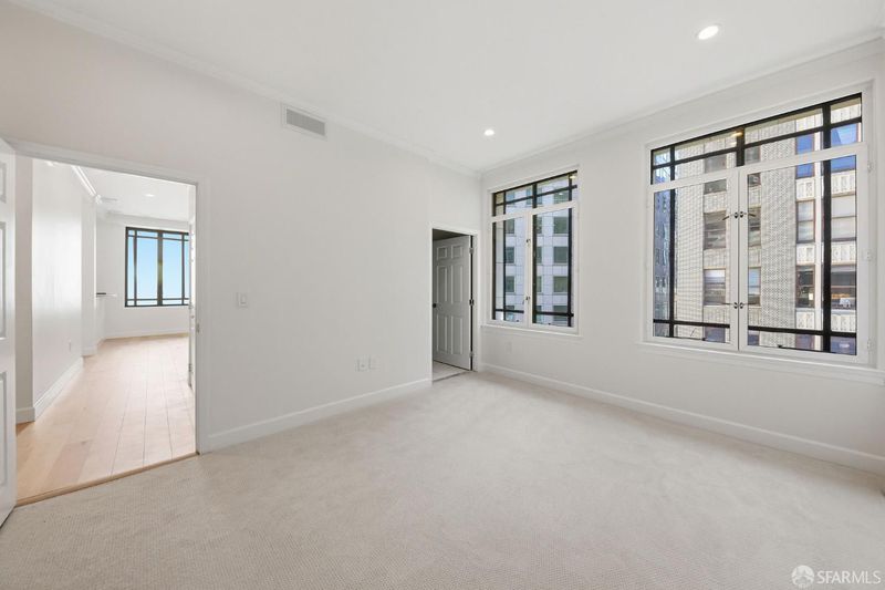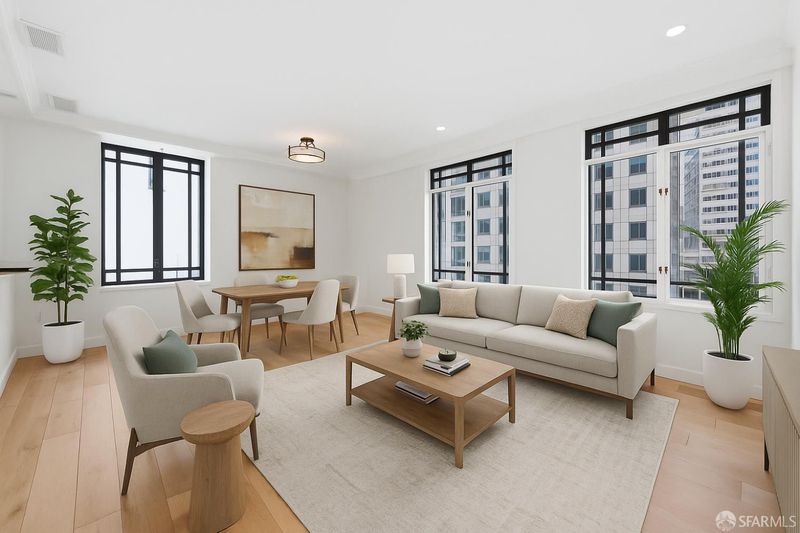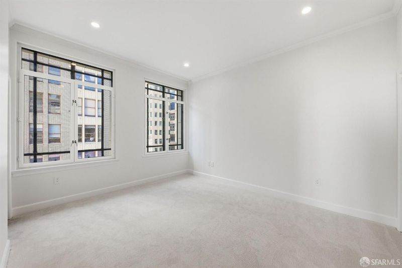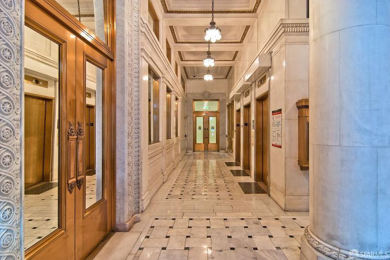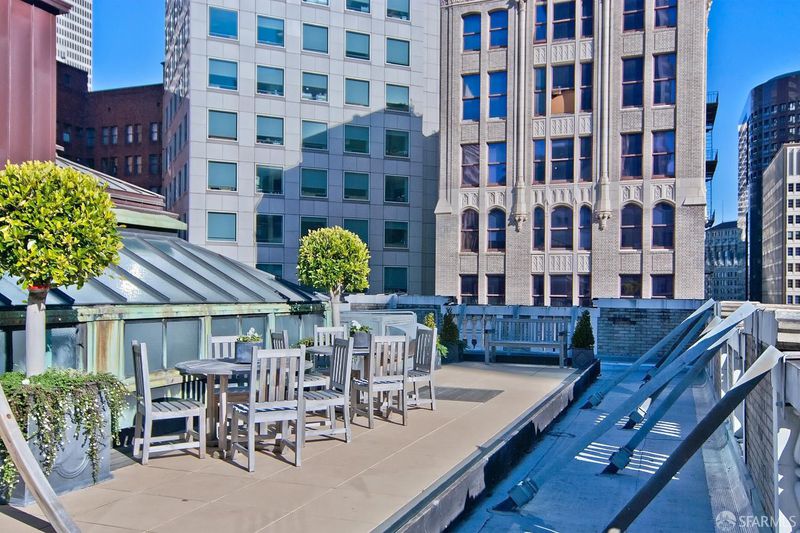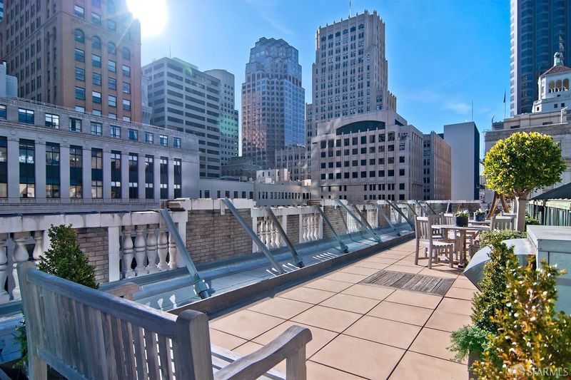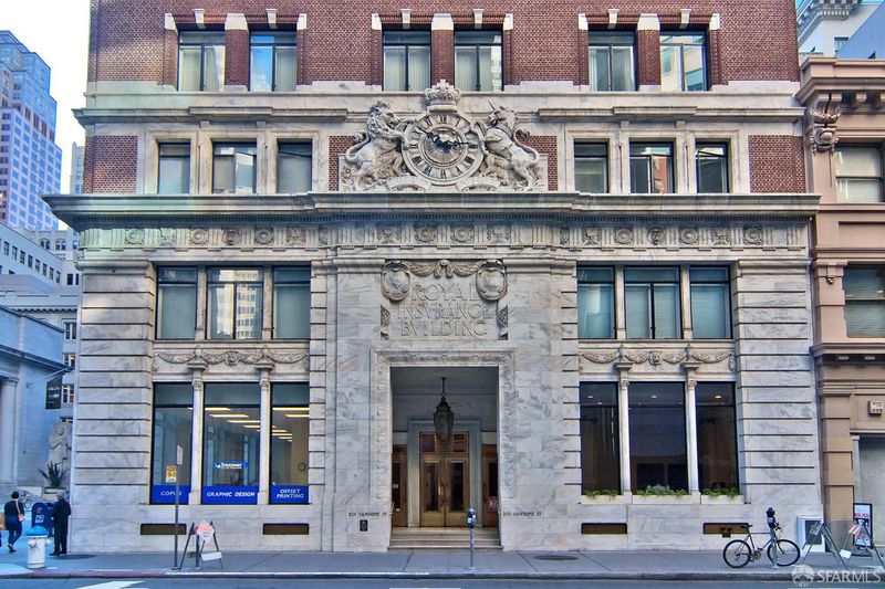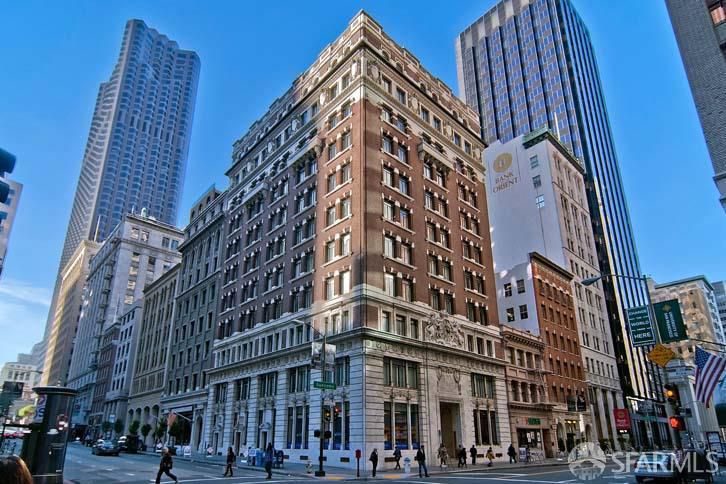Contemporary Living In Historic Jewel: This stunning 10th floor corner-residence in the Financial District offers 2 bedrooms, 2 full baths (one en suite) and a flexible workplace in the second bedroom. With 11' ceilings and large windows on three sides, the space is bathed in natural light streaming through restored wrought-iron casement windows. New hardwood floors with cork underlayment, new carpeting in bedrooms, upgraded recessed lighting, AC, washer/dryer, stainless steel appliances and large deeded storage. Taken together these present the opportunity for an inviting and truly unique home. The property is located in the Royal Insurance Building, a designated historical San Francisco Landmark. This architectural gem was the first modern office building constructed after the 1906 earthquake. No expense was spared to make the building an important symbol for the city. In 2007 the Royal was beautifully restored and modernized into luxury condominiums. At the corner of Pine & Sansome streets, it is situated across from the Four Seasons Hotel on one side and Equinox on the other. It affords short walks to: SoMa, The Ferry Building, Union Square, Chinatown and North Beach. Amenities include a refreshing roof garden and an elegant lounge. Truly remarkable and memorable.