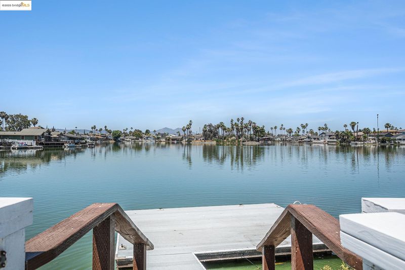 Single-Story Lakefront Home with Mt. Diablo Views and a Dock! Welcome to this charming, light-filled lakefront retreat offering breathtaking views of Mt. Diablo and unforgettable sunsets. This 3 Bed / 2 Bath home blends rustic charm with modern updates, featuring hardwood floors and solar tubes. The spacious Kitchen includes ample cabinetry, newer quartz countertops, an updated stove, and Breakfast Bar—perfect for preparing meals with a view. Cozy up to the fireplace and entertain with ease with your built-in bar. The Primary Suite offers direct access to the back deck, where you can enjoy peaceful evenings and vibrant sunsets from bed or step outside to soak in the serene lakeside ambiance. Additional highlights include fresh paint in beds and baths, a whole-house fan, water filtration system, RV parking, and a custom-built shed. The large private Dock is ideal for launching your electric boat, paddleboards, kayaks, or canoes—just steps from your covered deck. Don't miss your chance to live the lakefront lifestyle with panoramic views and everyday comfort in this truly special home!