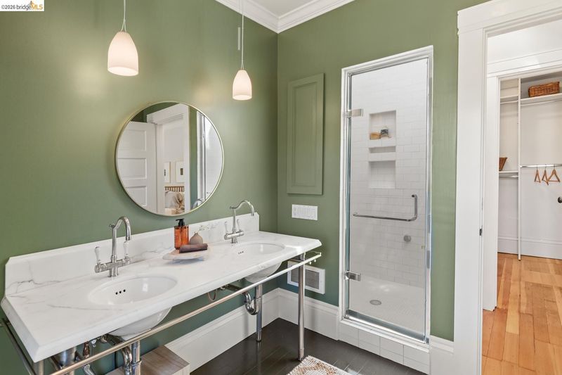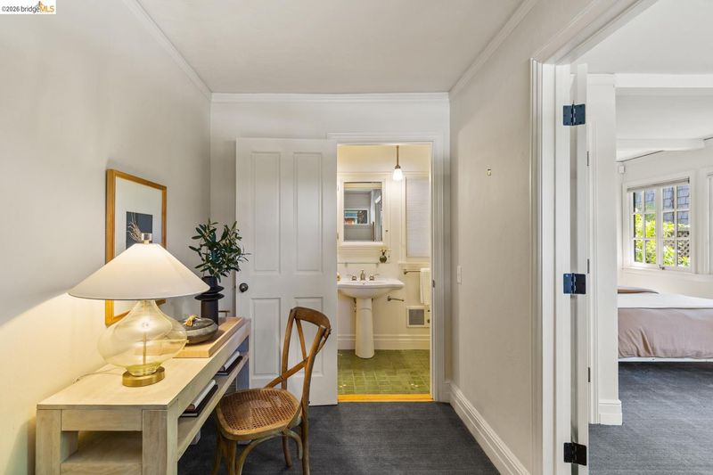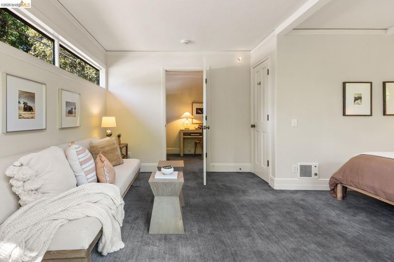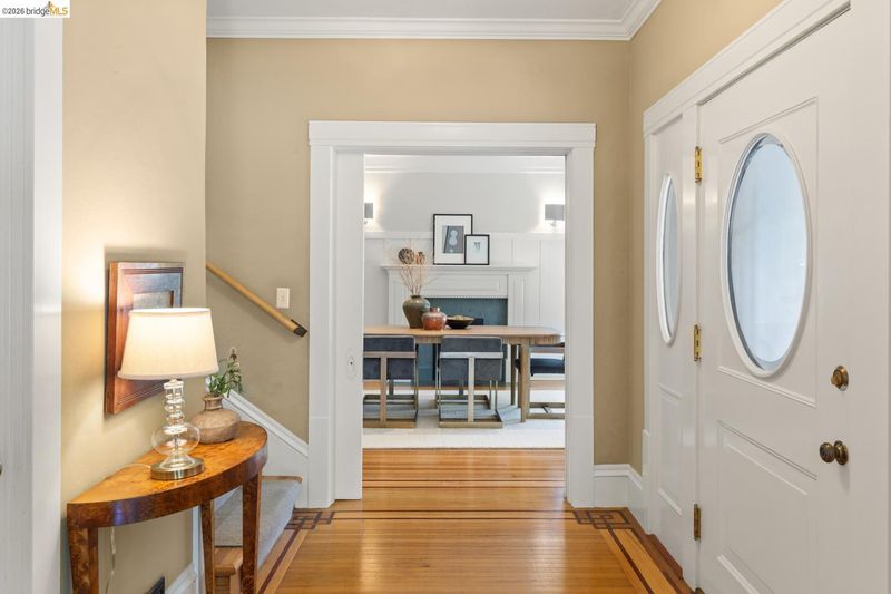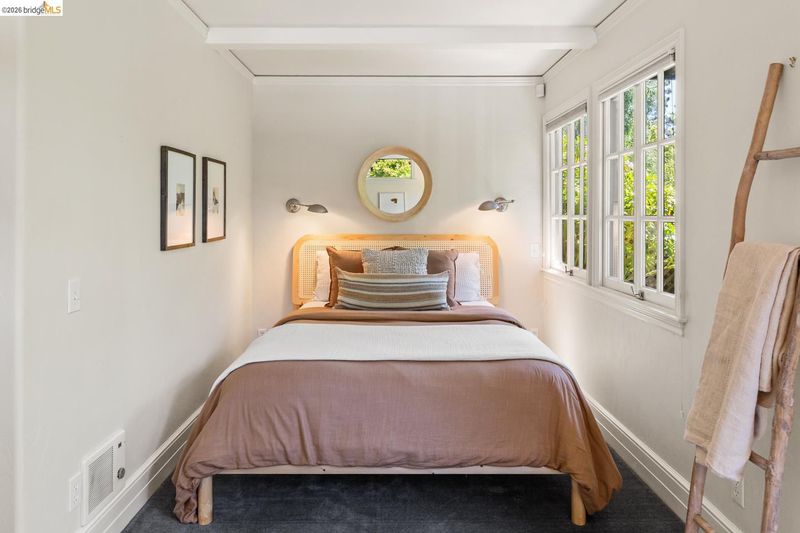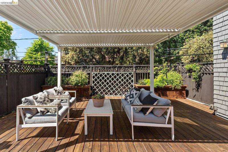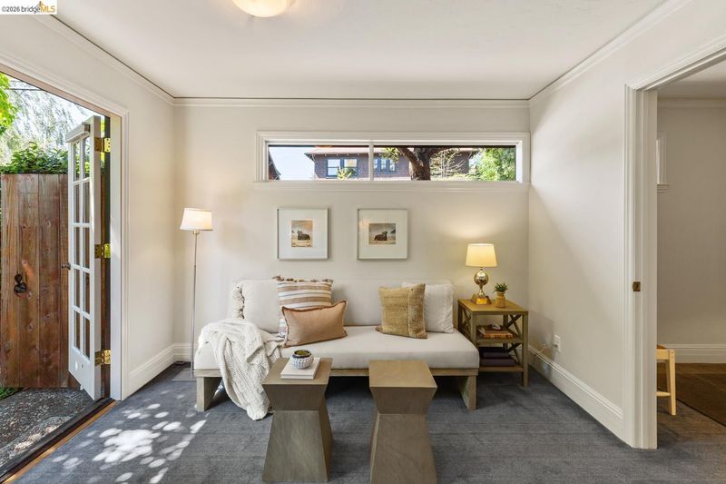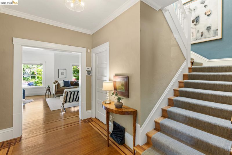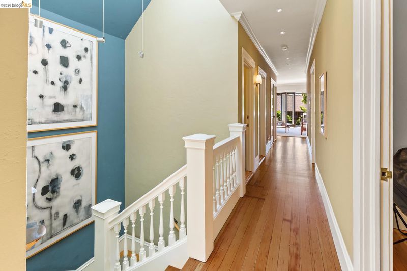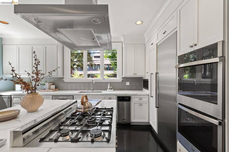 Stately and iconic, this historic 5+BR/4BA Elmwood Edwardian occupies a coveted corner lot just blocks from College Avenue. Distinguished by elegant, rounded windows that flood the home with natural light, the residence blends timeless architectural beauty with sophisticated modern updates. A dramatic entry opens to a grand foyer with coat closet and powder room, leading to a gracious living room with high ceilings, gleaming hardwood floors, fireplace, and beveled glass windows. A formal dining room with oversized windows and original pocket doors sets the stage for memorable entertaining. The beautifully remodeled chef’s kitchen features Carrara marble counters, premium appliances, double ovens, an extra-tall refrigerator, abundant storage, and a generous eat-in area. Upstairs, a luxurious primary suite offers a walk-in closet and spa-like bath with steam shower and skylights. Two additional bedrooms, 1.5 baths, and a conveniently located laundry complete the level. A spacious family room or office with floor-to-ceiling windows opens to a deck for seamless indoor-outdoor flow. The top floor offers a flexible guest/exercise space with skylights and Bay glimpses. A separate guest suite with full bath and private garden entry provides ideal accommodations. Surrounded by mature gardens and featuring extensive system upgrades, including newer foundation, electrical, and plumbing, this exceptional home offers timeless elegance in one of Berkeley’s most sought-after neighborhoods just moments to shops, dining, trails, and commute options. Elmwood living at its finest! BESO Score 2