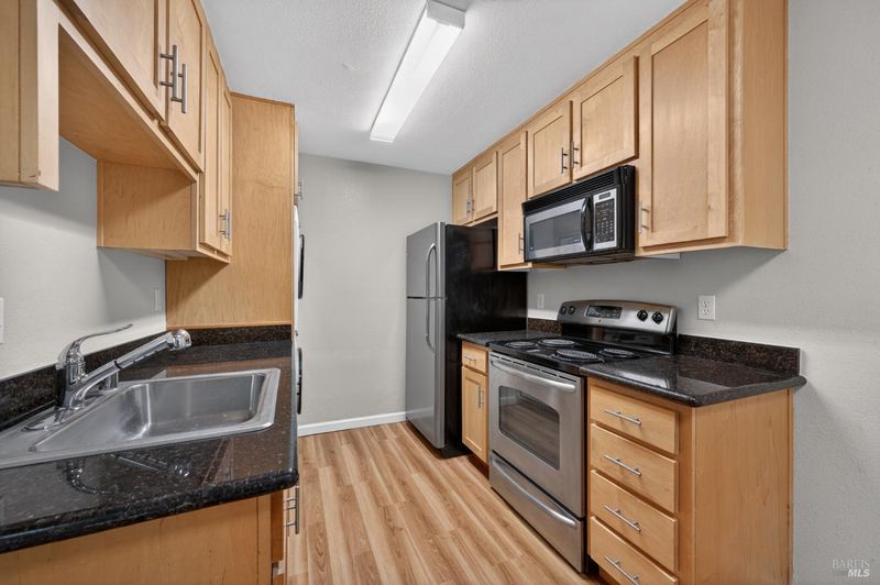Come on in and see this Benicia Highlands ground floor unit! Quaint 1 bedroom, 1 bath unit with a fenced yard. Plenty of space for relaxing! Laminate flooring through living room and kitchen areas! Newer stackable washer and dryer in the kitchen for in-unit laundry convenience. HOA maintains the common areas and pool! Easy freeway access and walking distance to shops. Just a couple minutes from the Benicia State Park!