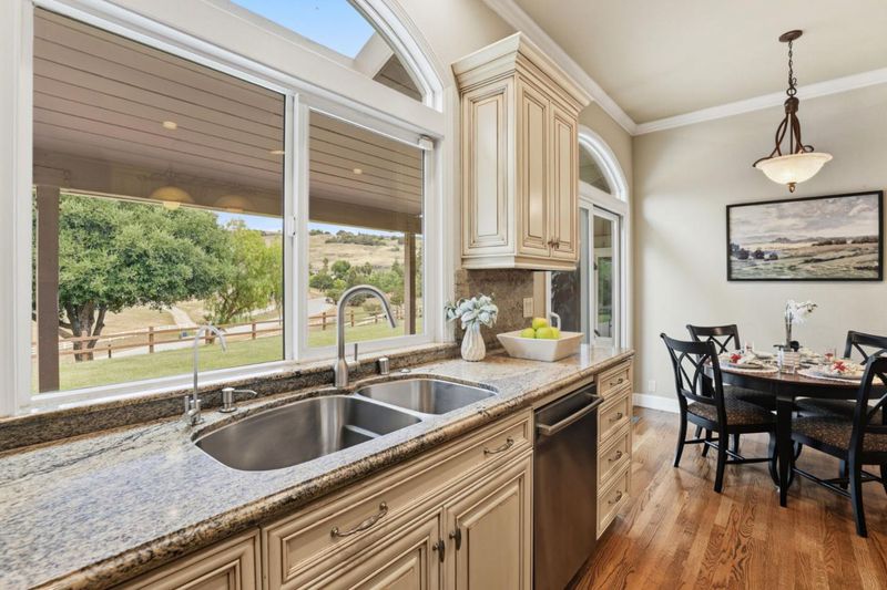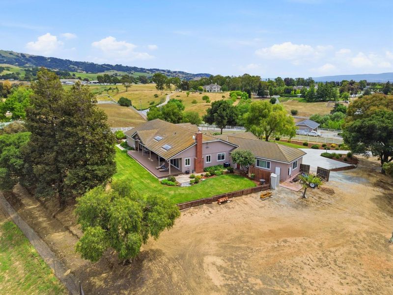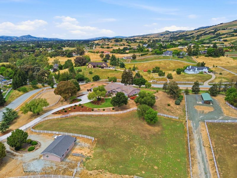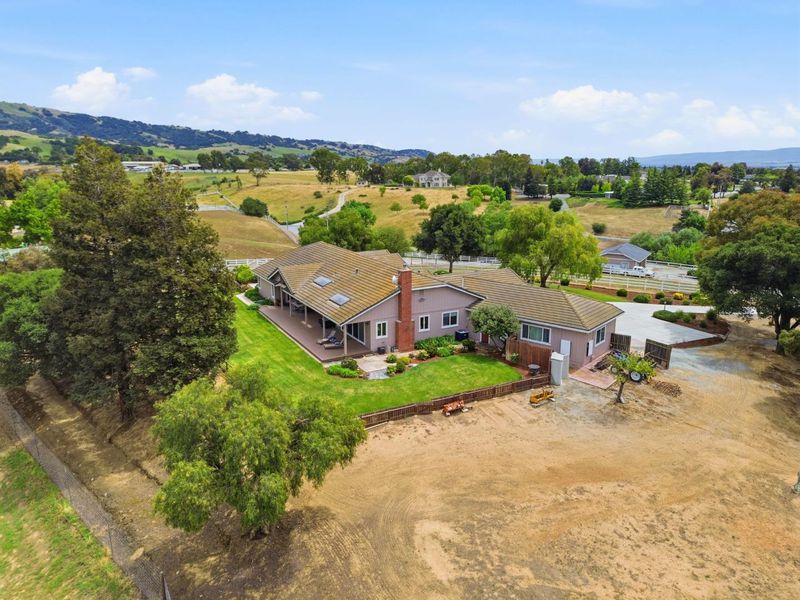 Privacy without isolation perfectly defines the lifestyle this exceptional single-story ranch delivers. Set atop a premium hilltop parcel w/ county-maintained road access on 3 sides, the property offers a rare sense of seclusion, panoramic valley & hillside views, and a peaceful setting - yet remains just minutes from shopping, dining & everyday conveniences. The homes placement was thoughtfully chosen to capture natural light, reduce wind exposure & maximize both views and functionality, creating a seamless connection between indoor & outdoor living. Inside, the layout is warm and inviting, centered around a stunning family room with a dramatic wall of windows and a cozy gas fireplace. The kitchen and living spaces flow effortlessly to a large covered patio, ideal for entertaining or simply enjoying the surrounding landscape. Extensive upgrades include remodeled bathrooms, hardwood flooring, a new driveway, and energy-efficient features such as a 10kW solar system with Tesla battery backup and a modern heat pump. The grounds offer walking paths, gardens, multiple sitting areas, and a barn with future potential, including possible ADU use. Whether you're seeking space for recreation, animals, or quiet retreat, this property captures the balance so many buyers are searching for