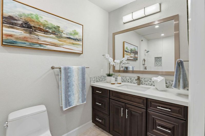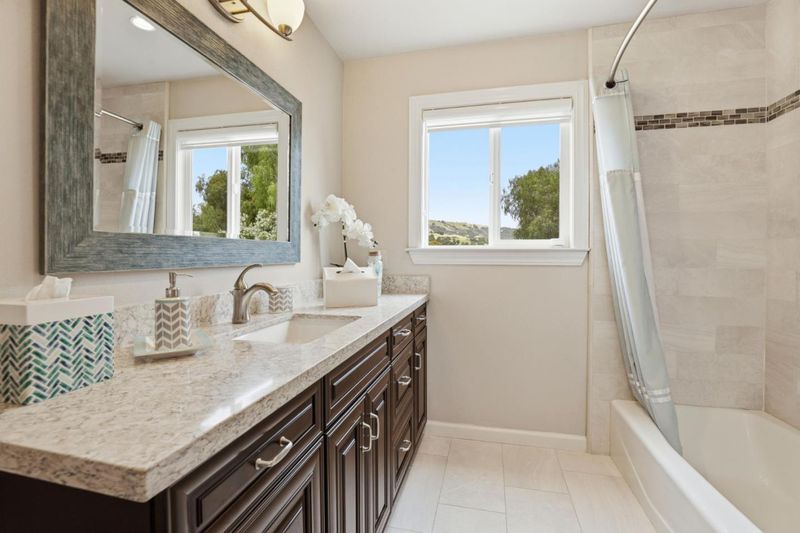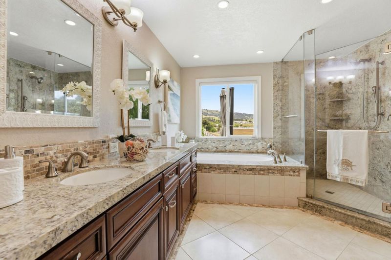 - Double Sinks, Oversized Tub, Primary - Stall Shower(s), Shower and Tub, Solid Surface, Tub in Primary Bedroom