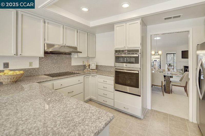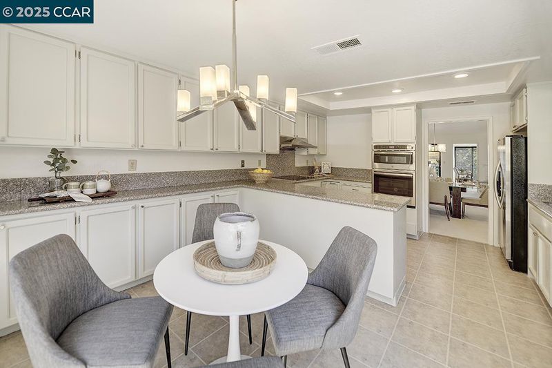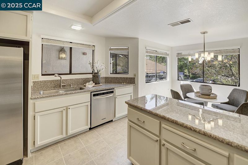 - Electric Range, Microwave, Oven, Refrigerator, Dryer, Washer, Breakfast Nook, Stone Counters, Eat-in Kitchen, Electric Range/Cooktop, Disposal, Oven Built-in, Updated Kitchen