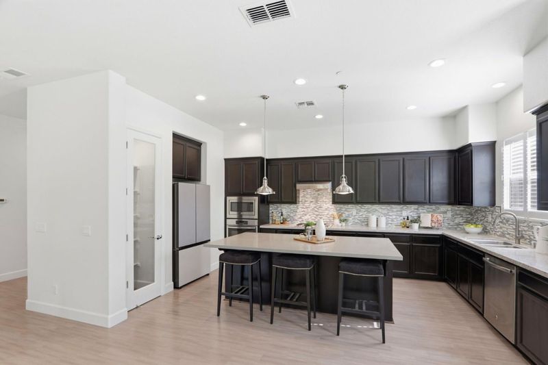 - Cooktop - Gas, Countertop - Quartz, Dishwasher, Exhaust Fan, Garbage Disposal, Island, Microwave, Oven - Built-In, Pantry, Refrigerator