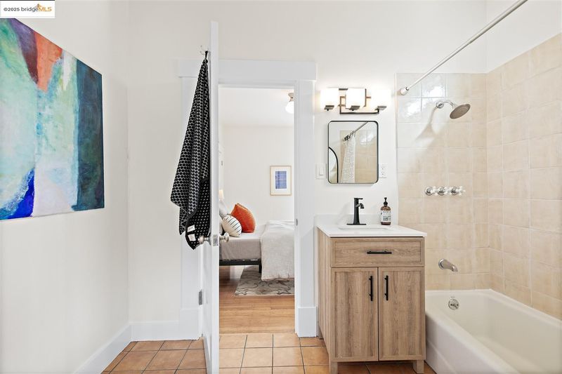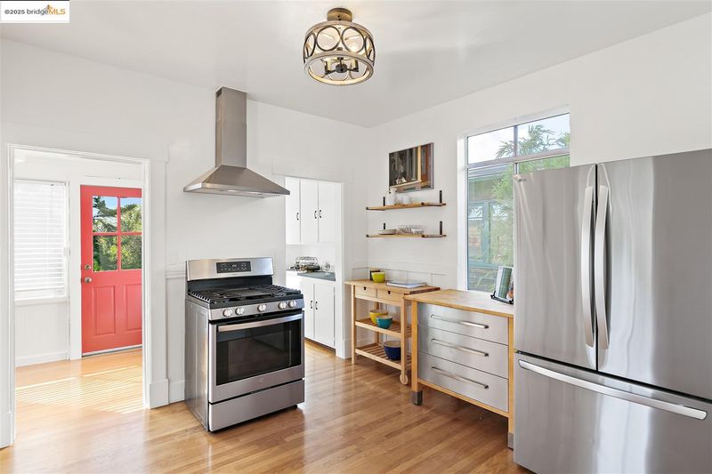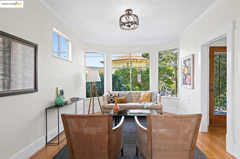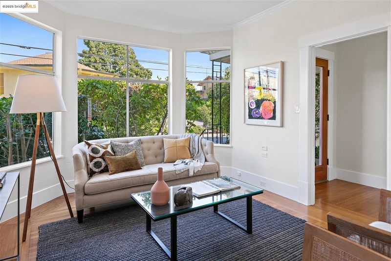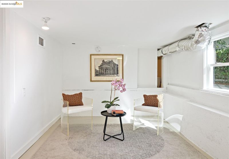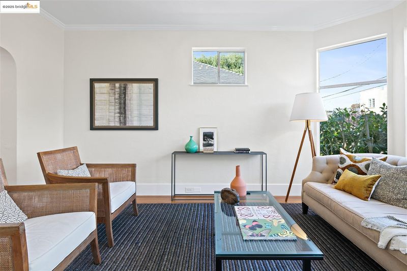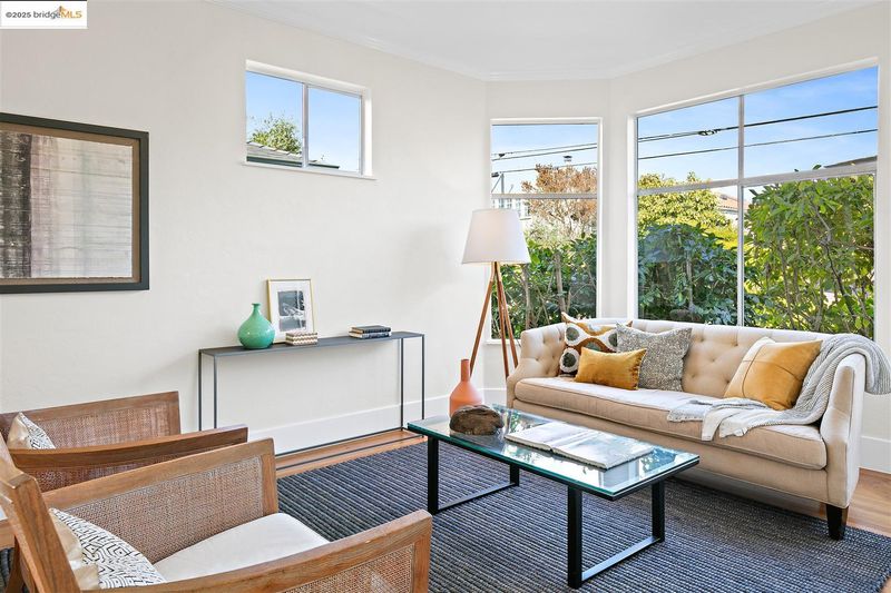 Welcome to this delightful and well-maintained 2+ bedroom Edwardian-style home nestled in the vibrant Westbrae neighborhood. A picturesque front porch framed by mature bougainvillea opens to a light-filled interior featuring tall ceilings, rich hardwood floors, and expansive bay windows in the elegant living room. A spacious dining room features a wall of windows, while the refreshed kitchen boasts stainless steel appliances, solid surface countertops, hardwood floors, and two bonus alcoves that offer excellent additional counter space and storage. The updated bathroom includes a newer vanity, sink, and modern tile work. Step outside to a fully fenced backyard featuring a mature lemon tree, patio, and grassy area for outdoor dining, gardening, or play. A detached modern bonus studio space adds flexibility, complete with gorgeous wood flooring, wood-paneled ceiling, and its own beautifully tiled bathroom with walk-in shower. The property also includes a large unfinished lower-level area.