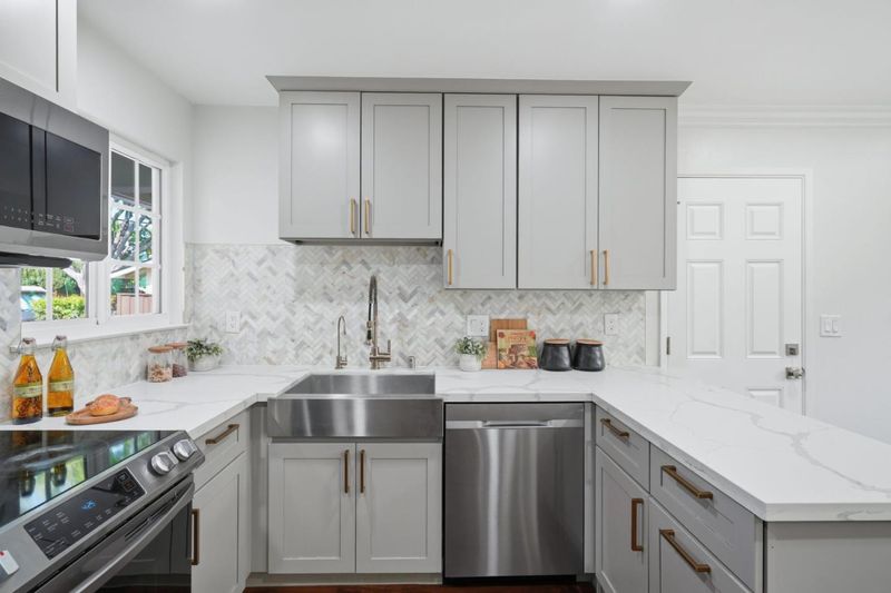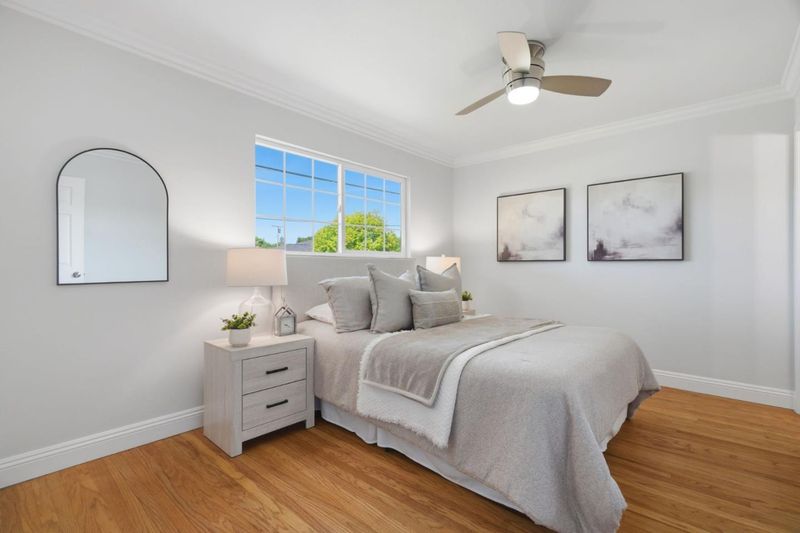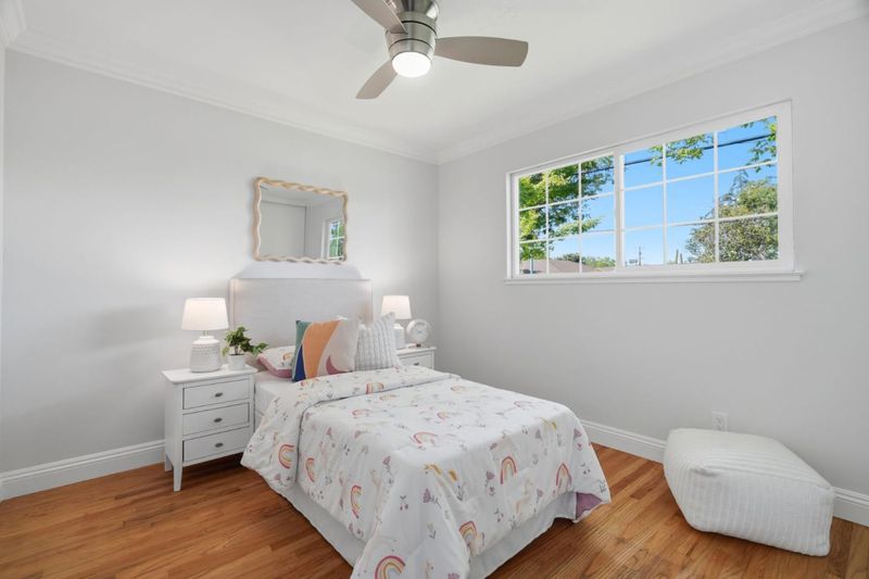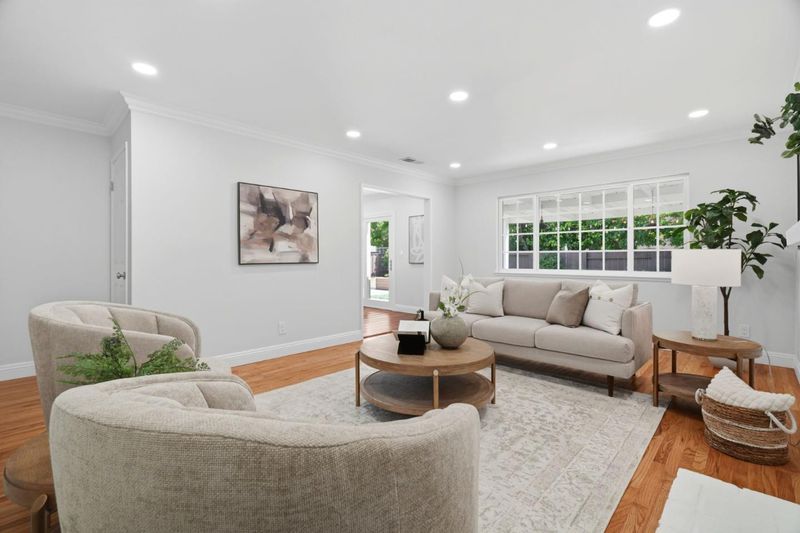 Move-in ready 3-bedroom, 2-bath home with fresh interior paint and hardwood floors throughout. The spacious kitchen features quartz countertops, a designer tile backsplash, gold accents, newer appliances, and a generous dining area ideal for everyday living and entertaining. Both bathrooms have been updated with clean, modern finishes. The large backyard is designed for enjoyment, featuring new sod, raised vegetable beds, and string lighting, creating a great space for weekend BBQs, outdoor dining, and relaxed evenings under the stars. Natural light fills the home, creating a comfortable flow from morning to evening. Located on a quiet, community-oriented street with convenient access to The Pruneyard Shopping Center, nearby parks, and San Tomas Expressway for commuting. Situated within an award-winning school district. Well maintained with pride of ownership throughout.