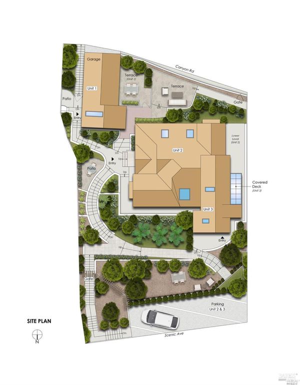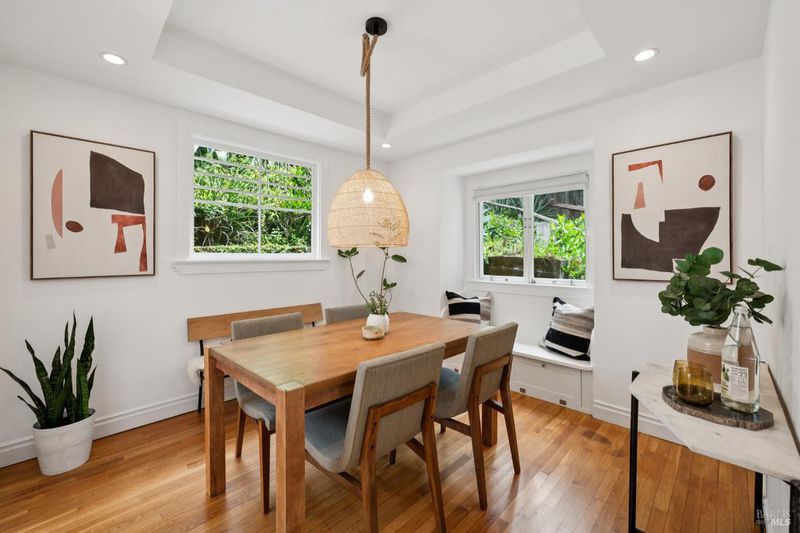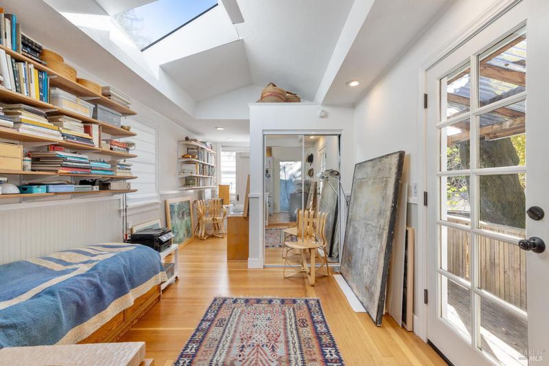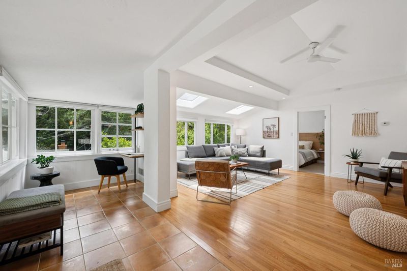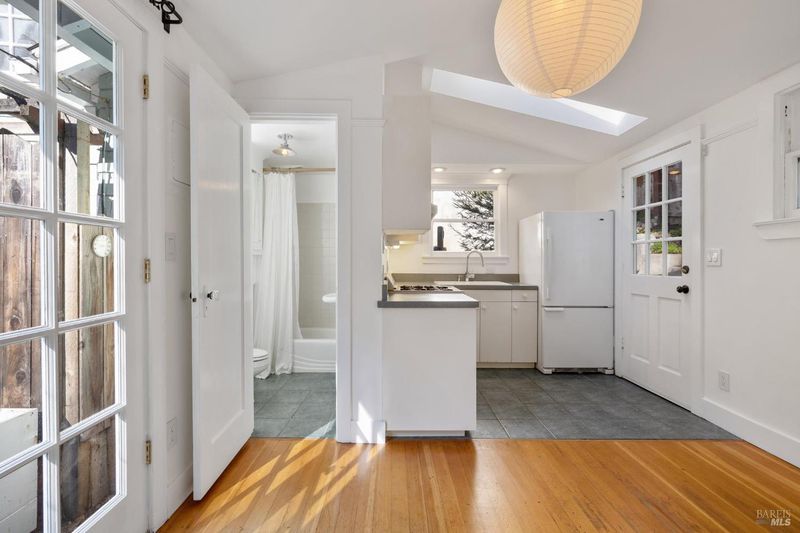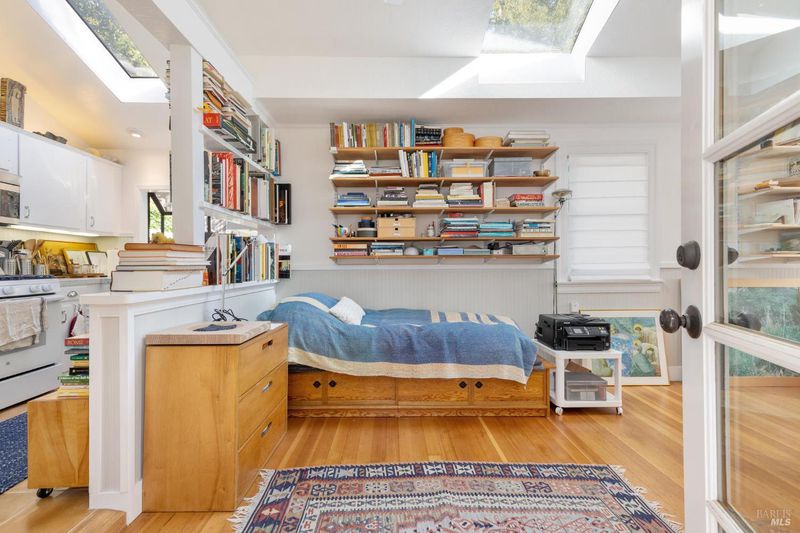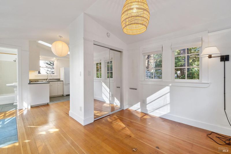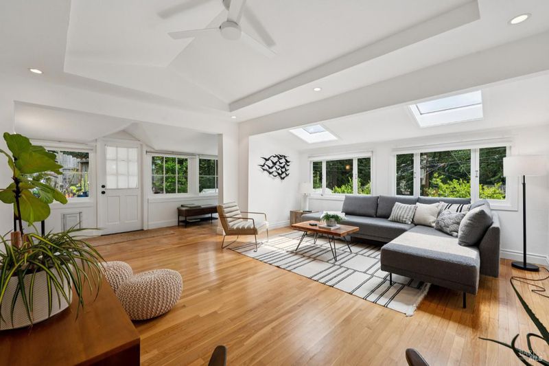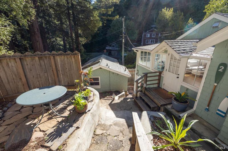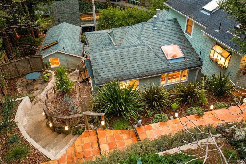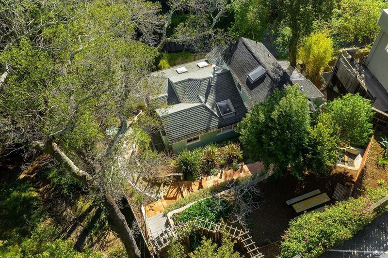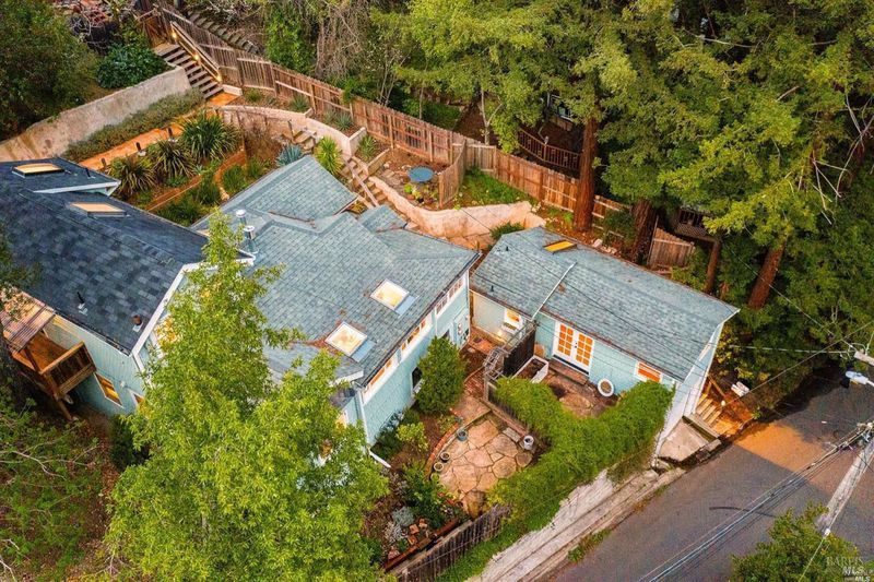 Delightful, light-filled and charming cottage with 2 bdrms and 1 bath, wood floors, pitched ceiling, spacious living areas and multiple outdoor areas plus a one-car garage. In addition, there are two similar style studio rental units, each with their own outdoor living spaces and one parking spot. Both are bright and welcoming, and can continue to be used for appealing rentals or later as a home offices, gym, guest suite, for young adults or extended family. Imagine this as your own residence in its entirety or as a family compound. Currently the smaller units are rented to lovely tenants. The yard is filled with flowering plants and trees, with a meandering path from the top of the lot to the bottom. There is an area for a hammock in the shade near the fig tree, plenty of small patios, areas for gardening and a deck for one of the studios. There is a large basement under the main cottage with plentiful storage and a washer/dryer, currently shared by the residents. This is an amazing opportunity to own a move-in ready cottage with 2 tenants in place, that both feels private and yet close to both downtown San Anselmo and Fairfax. Neighbors seem to enjoy daily walks with friends and pets, making it easy to say hello. Appointments are required for pre-approved buyers; there are no open houses scheduled. This is a rare opportunity in San Anselmo!