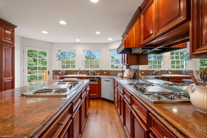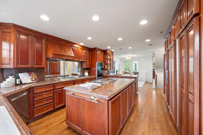- Cooktop - Gas, Countertop - Granite, Dishwasher, Freezer, Hood Over Range, Island, Oven - Double, Oven Range - Gas, Refrigerator, Trash Compactor