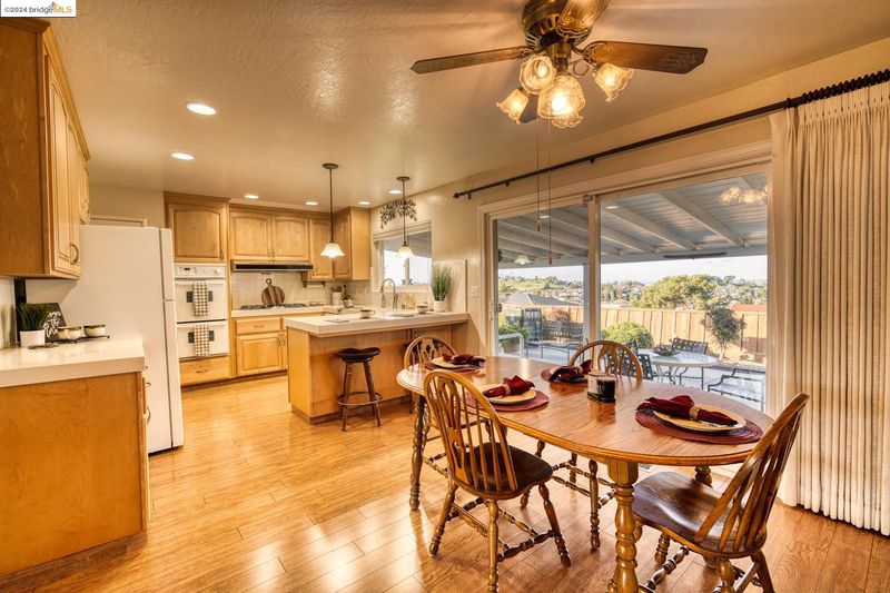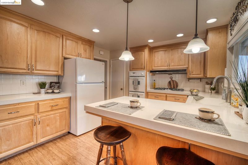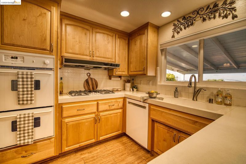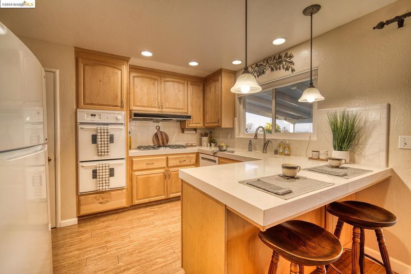 - Dishwasher, Double Oven, Disposal, Gas Range, Breakfast Bar, Breakfast Nook, Counter - Solid Surface, Counter - Stone, Eat In Kitchen, Garbage Disposal, Gas Range/Cooktop