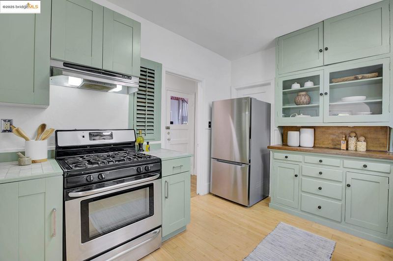 - Gas Range, Refrigerator, Tile Counters, Gas Range/Cooktop