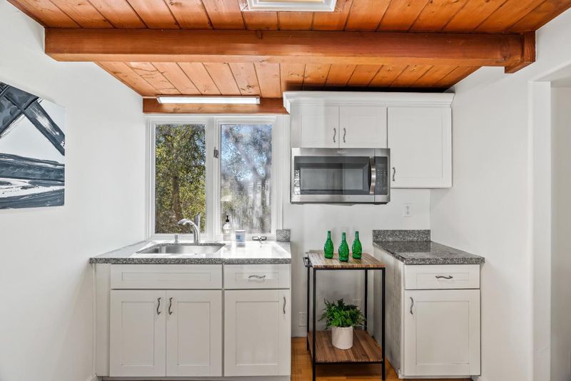 - Cooktop - Electric, Countertop - Quartz, Dishwasher, Garbage Disposal, Microwave, Oven - Built-In, Refrigerator, Skylight