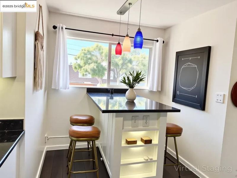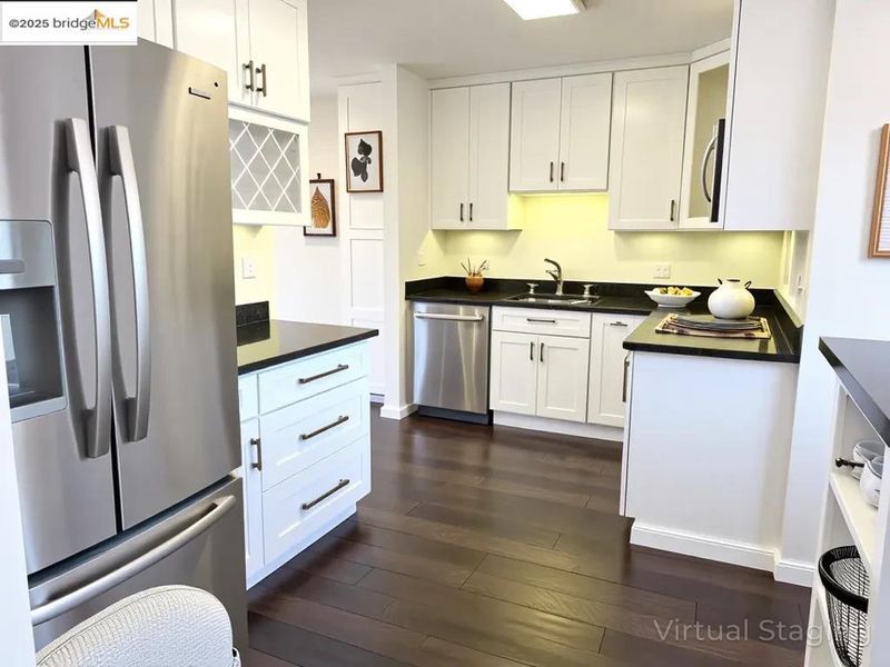 - Dishwasher, Range, Refrigerator, Breakfast Bar, Counter - Solid Surface, Range/Oven Built-in, Updated Kitchen