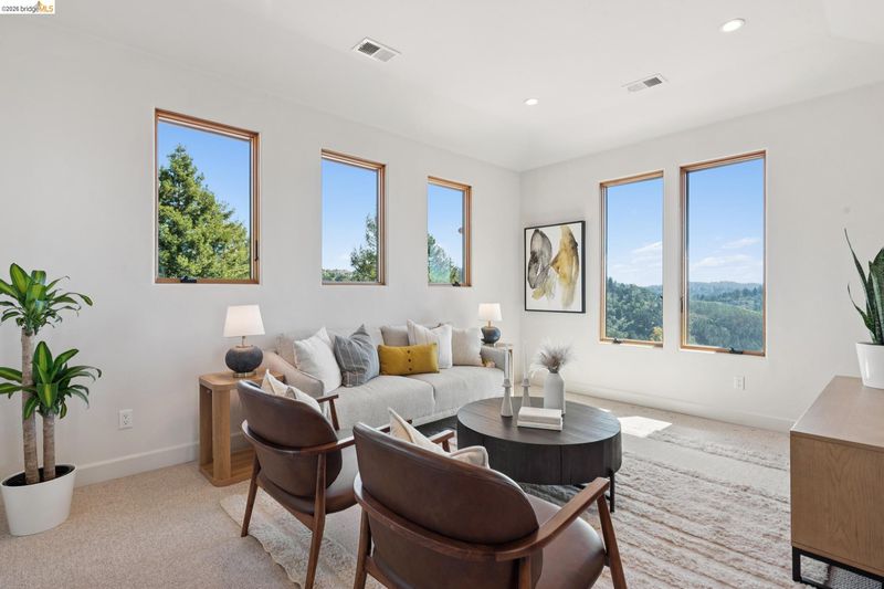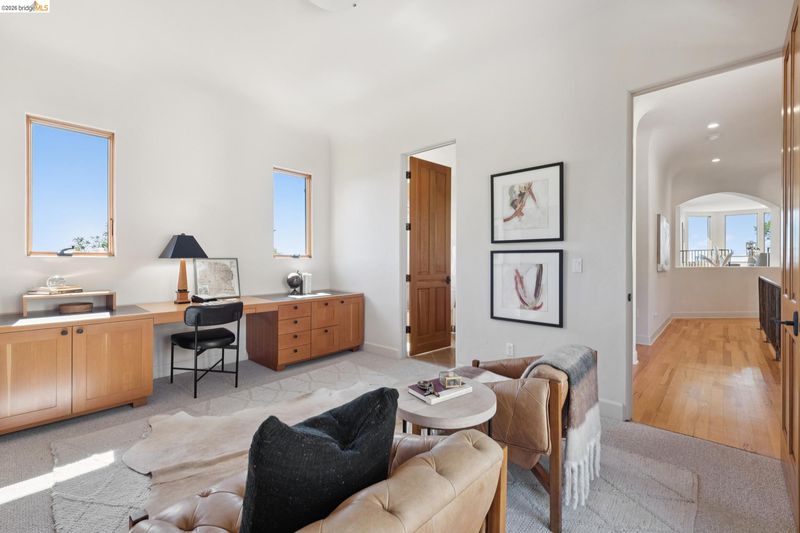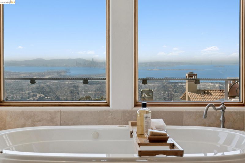 7101 Marlborough Terrace is a gated Modern Mediterranean estate showcasing panoramic San Francisco Bay and Golden Gate Bridge views. Impeccably constructed, the home features soaring ceilings and an open floor plan designed for seamless indoor-outdoor living, with outdoor gourmet kitchen, expansive terraces for sunset views, and multiple balconies. The ideal designed layout includes an exquisite primary suite with a room-sized closet and office, a private downstairs guest suite, and two additional main-level bedrooms. Additional amenities include, two oversized garages, abundant storage, central vacuum system, and a beautifully secluded hillside setting. A rare combination: Berkeley mailing address with Oakland schools and services.
