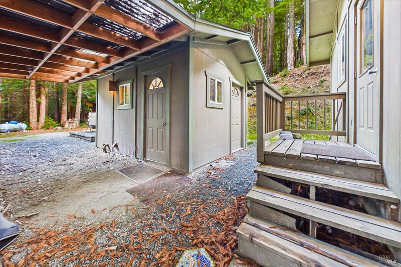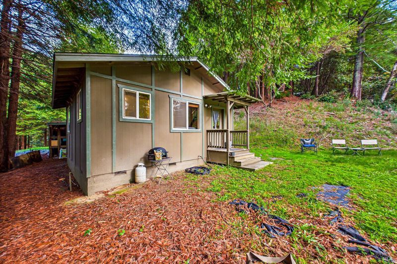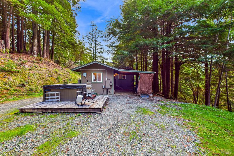 220 Madrone Road, Weott, CA 95571 | $245,000 | 1 BD / 1 BA | 484 SF | 1.36 Acres Redwood Retreat on the Avenue of the Giants Tucked behind a private gated entrance and wrapped by soaring old-growth redwoods, 220 Madrone Road is the kind of place people dream about but rarely find -- a fully functional, move-in-ready cabin where the forest does most of the decorating. Built in 2004 and thoughtfully designed to make every square foot count, the 484-square-foot home opens into a light-filled great room with vaulted ceilings, a skylight that filters the forest canopy above, warm wood floors, and a classic wood stove that keeps the space cozy on cool Humboldt evenings. The kitchen flows seamlessly into the living and dining area, making the layout feel far more spacious than the numbers suggest. The bathroom is a standout -- a deep clawfoot soaking tub with overhead shower, tile floors, and its own vaulted ceiling give it a boutique-hotel feel. The bedroom offers dual windows framing views directly into the redwoods, and the property's hillside location captures mountain views that open up beyond the tree line. Step outside, and the property truly earns its asking price. A covered deck and hot tub for year-round soaking under the stars, a gravel courtyard provides ample parking and breathing room, and a substantial two-room workshop/storage building (approx. 430+ SF per floor plan) gives hobbyists, creatives, and off-grid tinkerers serious elbow room. A separate utility building handles laundry and additional storage, keeping the main living space clean and uncluttered. Practical details check out, too: metal roof, public water, electric and propane, and baseboard heating backed by that wood stove. All of this sits just minutes from the Avenue of the Giants and Humboldt Redwoods State Park -- one of the most breathtaking natural corridors in California -- making this an exceptional weekend retreat, full-time escape, or vacation rental opportunity. If you've been searching for something real, something quiet, and something surrounded by trees that were standing before your great-grandparents were born -- this is it. Key Features at a Glance: Vaulted great room with skylight Wood stove Clawfoot soaking tub Hot tub & deck Two-room workshop building Separate utility/laundry room Metal roof Public water 1.36 acres Gated private driveway Mountain views Adjacent to Humboldt Redwoods State Park