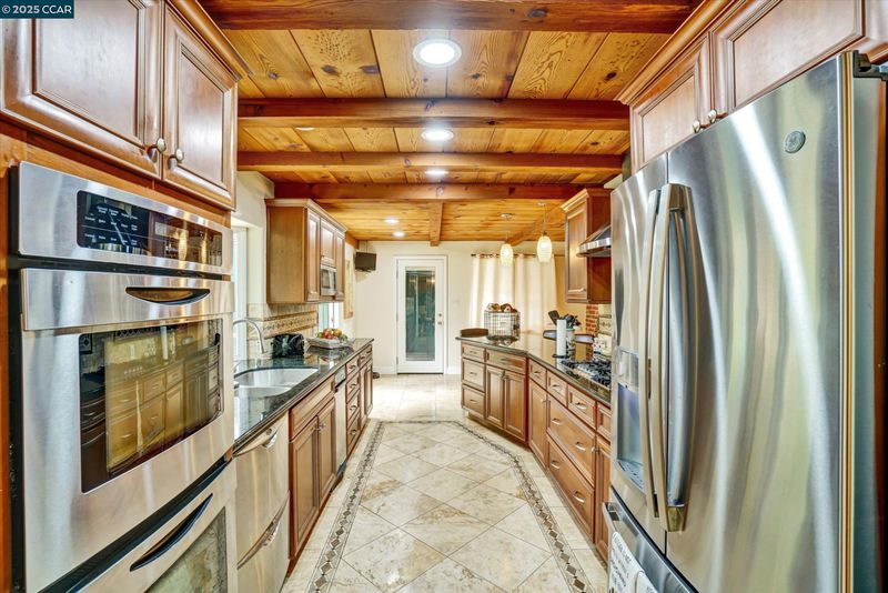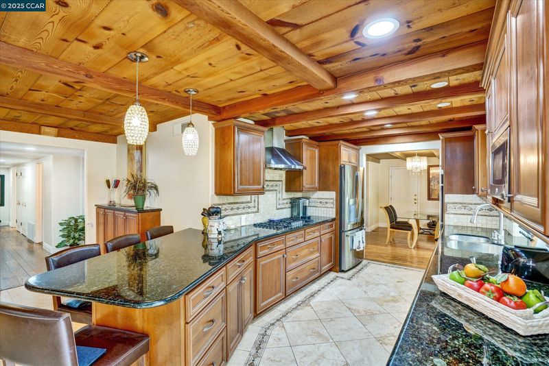 - Dishwasher, Double Oven, Gas Range, Microwave, Refrigerator, Trash Compactor, Breakfast Bar, Stone Counters, Eat-in Kitchen, Disposal, Gas Range/Cooktop
