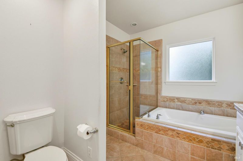 - Double Sinks, Jetted Tub, Shower Stall(s), Tile, Window