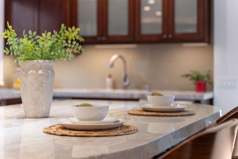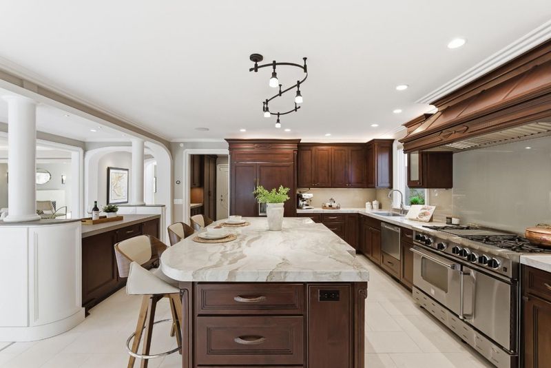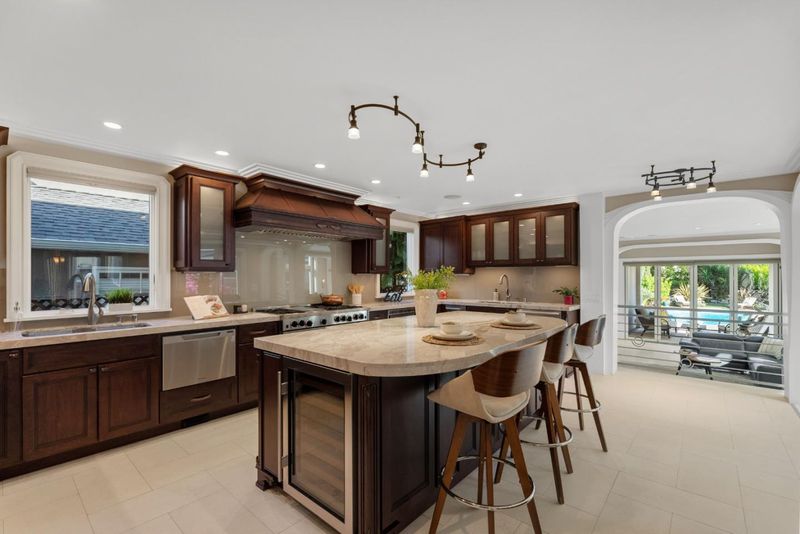 - Countertop - Quartz, Dishwasher, Garbage Disposal, Hood Over Range, Island, Microwave, Oven Range - Gas, Refrigerator, Wine Refrigerator
