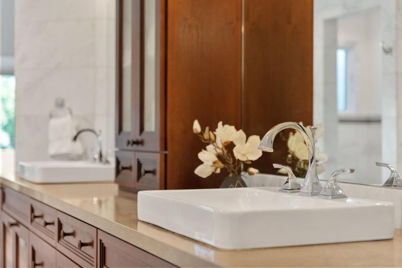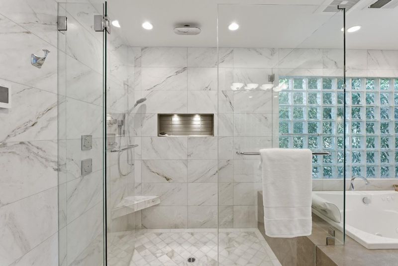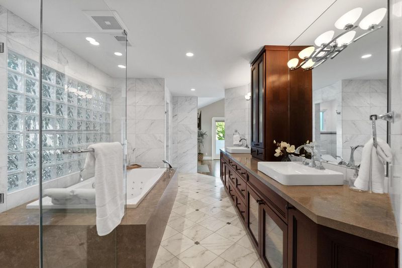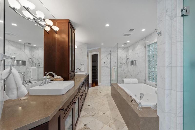 - Double Sinks, Full on Ground Floor, Half on Ground Floor, Primary - Oversized Tub, Primary - Stall Shower(s), Primary - Tub with Jets, Sauna, Showers over Tubs - 2+, Stall Shower - 2+, Updated Bath