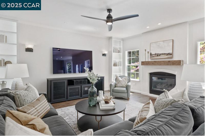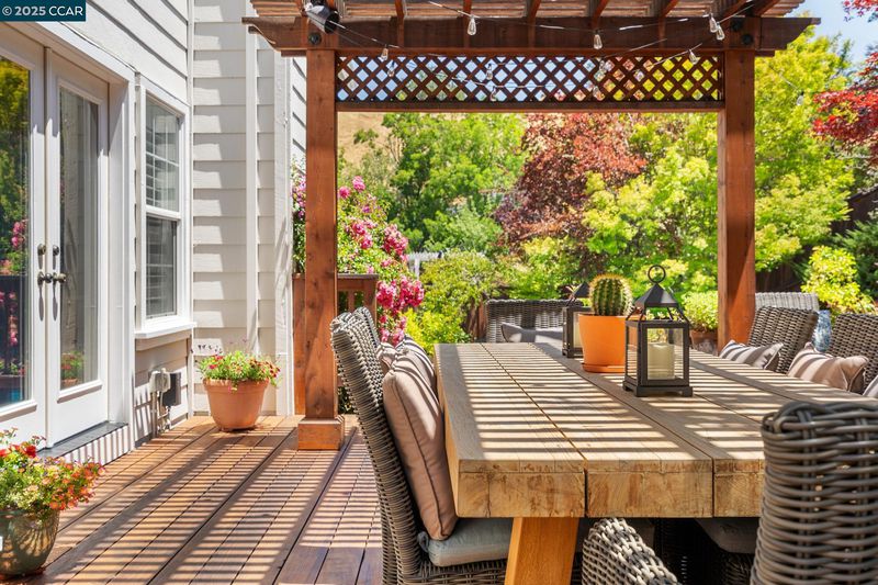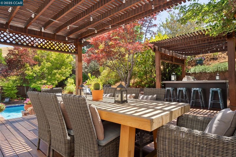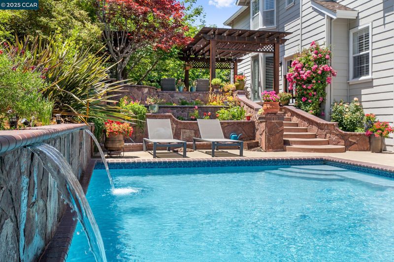 Feels Like a Retreat every day! Light-filled and beautifully updated, this inviting home blends timeless style with modern comfort. Light and airy from the moment you walk in the door. Open-concept design flows effortlessly from the stunning white kitchen to the expansive family room—ideal for everyday living and entertaining. Space and privacy for everyone with versatile floor plan. Designer finishes add warmth and sophistication throughout, creating a home that feels fresh, bright, and welcoming. Hardwood floors throughout the main living areas, extensive moldings and mill work. True sense of quality with high-end accents. Step outside to your private backyard sanctuary: a sunny, south-facing retreat with pool and spa, outdoor kitchen, decks, pergolas, fire pit, and lush English gardens. Whether hosting friends or enjoying quiet evenings under the stars, this space inspires relaxation and connection. Meticulously maintained with attention to every detail, this home reflects total pride of ownership and is completely move-in ready. Situated on a friendly cul-de-sac in sought-after Magee Ranch—where neighbors gather for porch parties and holiday celebrations—with Mt. Diablo views, top-rated SRV schools, and a lifestyle that celebrates true California living. Open Sunday 2-4pm.