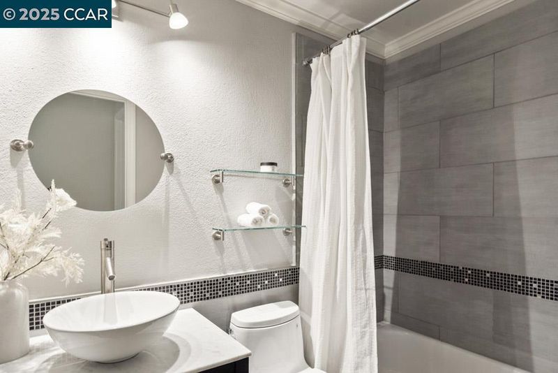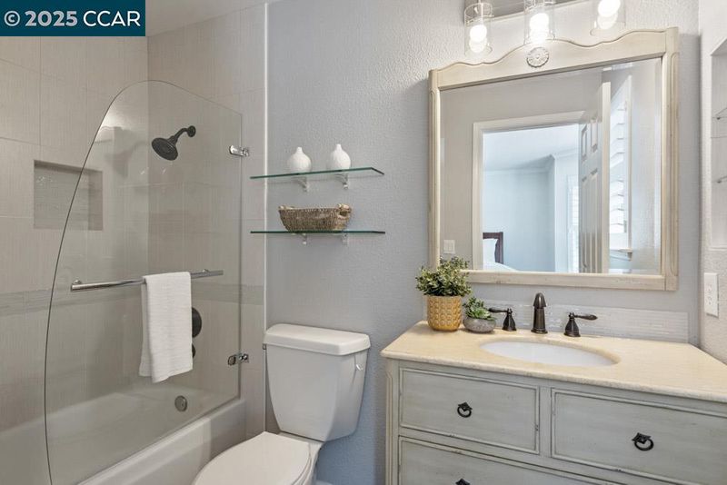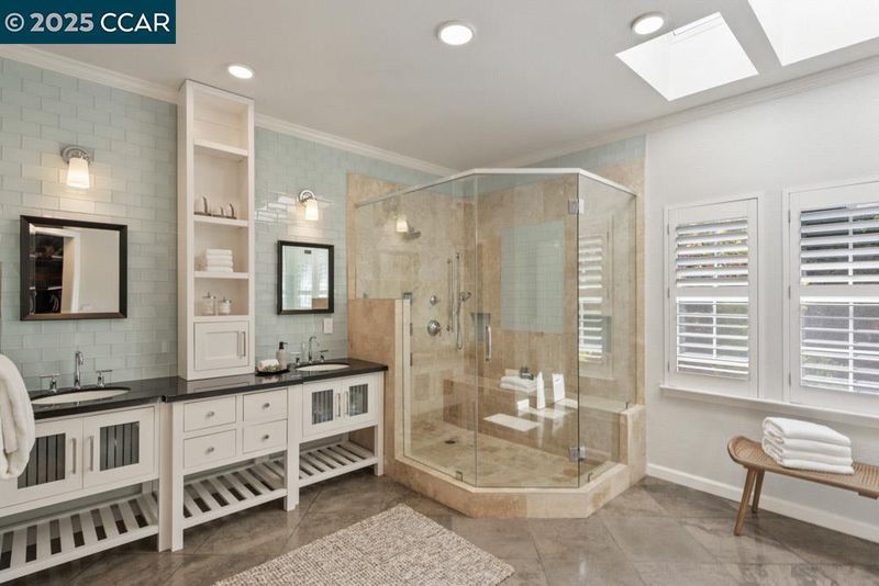 - Shower Over Tub, Solid Surface, Tile, Updated Baths, Double Vanity