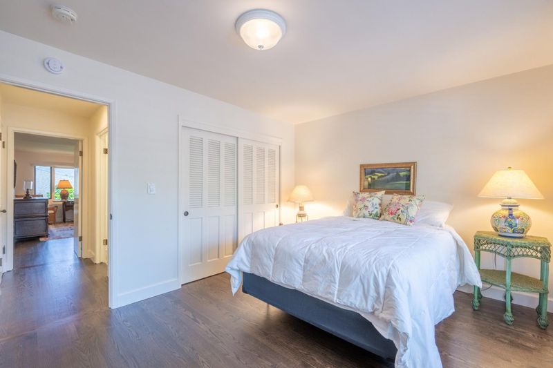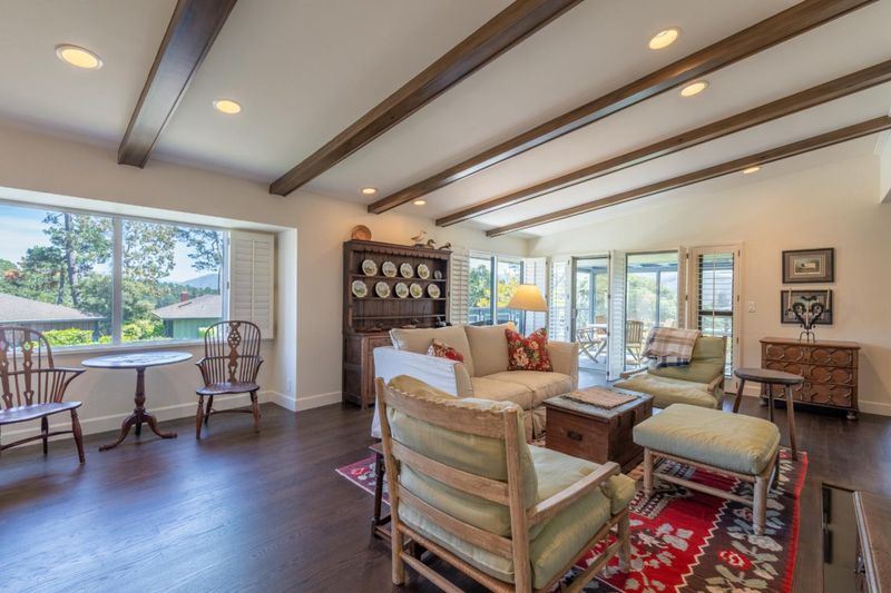Tucked within the sought-after Del Mesa Carmel community, this south-facing 2-bedroom, 2-bath residence offers a warm blend of comfort and convenience in a serene setting. Thoughtfully updated, the home features new hardwood floors, fresh kitchen cabinetry, new appliances, and beautifully refinished exposed beams that add character to the living space. A gas-burning fireplace creates an inviting focal point, while radiant floor heating enhances everyday comfort. Natural light fills the home, with tinted windows in the dining area and primary suite providing added privacy. The mostly enclosed porch offers a versatile space to relax, read, or enjoy indoor-outdoor living year-round. Ideally positioned with parking just steps from the front door and a convenient carport, this home combines easy accessibility with low-maintenance living. Enjoy the peaceful surroundings and amenities of Del Mesa Carmel, all just moments from the charm of Carmel-by-the-Sea.