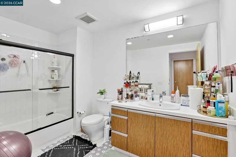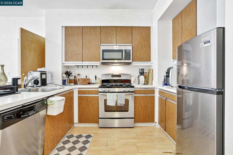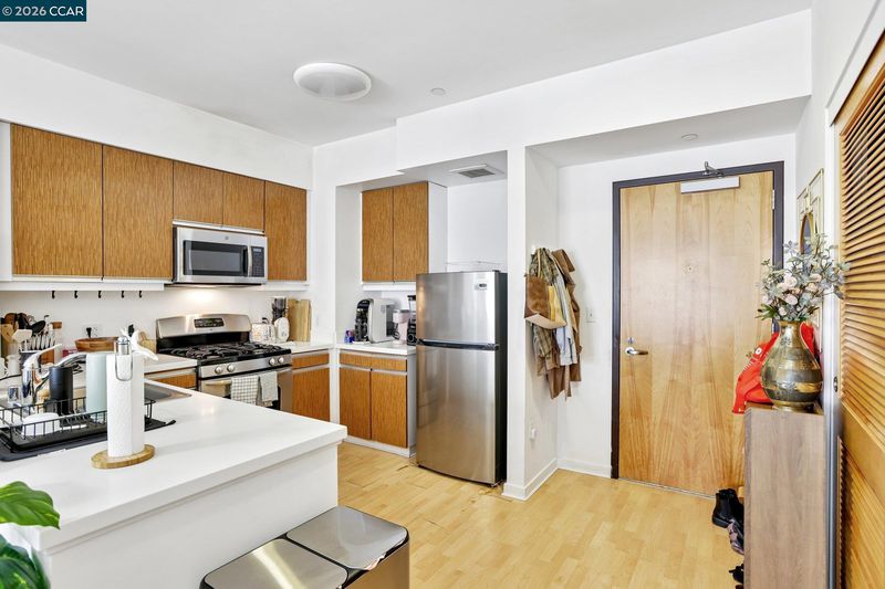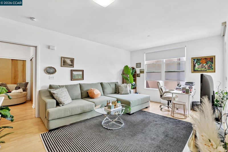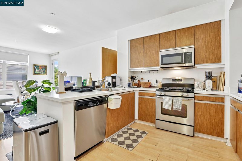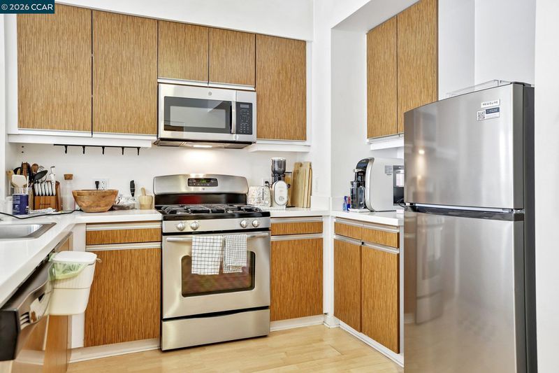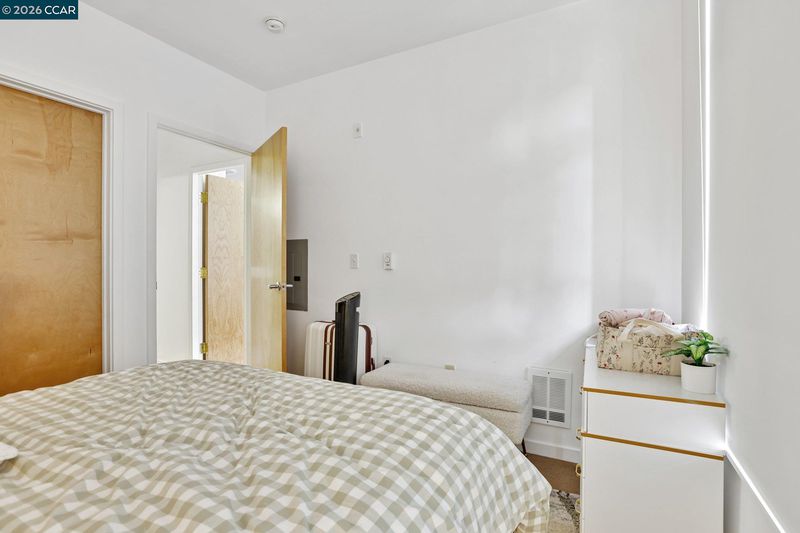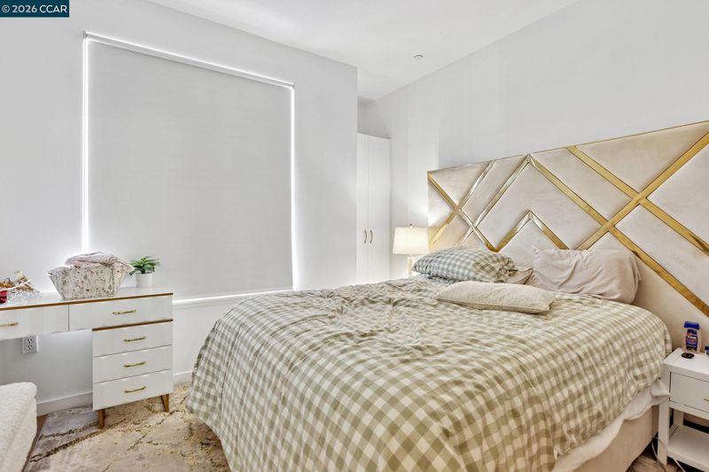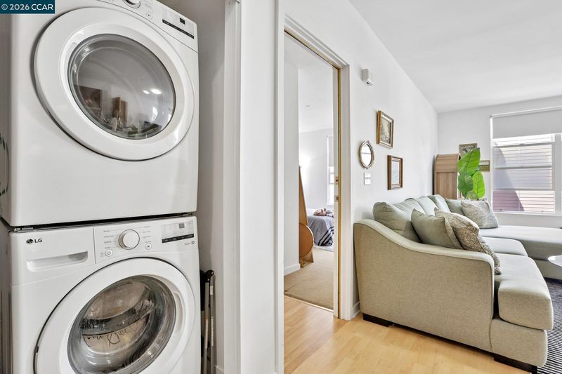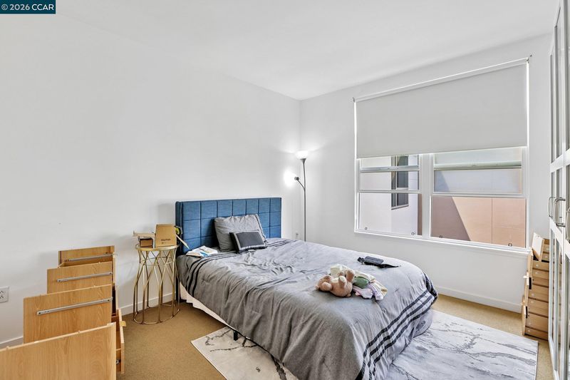 Experience serene urban living in this beautifully upgraded, courtyard-facing. This rare unit offers a peaceful retreat from the city buzz, overlooking the lush interior garden rather than the street, and features modern comforts like a brand-new refrigerator, a recently upgraded in-unit washer/dryer, and central heating with individual temperature thermostats in every room for personalized climate control. Built in 2010, the building provides excellent amenities including a dedicated mailroom for secure package delivery, a community BBQ grill and picnic area, and a secure parking garage. Located in a vibrant neighborhood just steps from the Muni T-Line for a 20-minute commute to downtown, you are also within easy walking distance of local favorites like Craftsman and Wolves, Laughing Monk Brewery, and waterfront parks, making this the perfect blend of tranquility and city convenience.