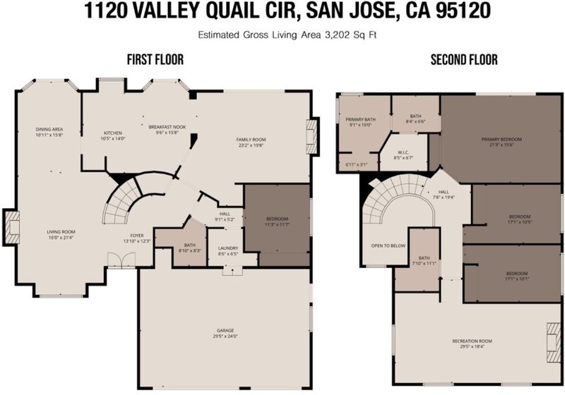 This spectacular home on an expansive 18,000 SqFt premium lot in Glencrest Estates, one of Almaden's most desirable areas.The home offers 3,202 SqFt of living space. Freshly painted interior throughout. This home Includes 4 beds, 3 baths, spacious living room w/fireplace, and a formal dining area. The eat-in kitchen boasts SS appliances, an island, premier six-burner Viking gas cooktop w/griddle & 2 ovens. Separate family room has a wet bar, fireplace, drop-down projection screen, & surround sound, creating an ideal environment for relaxation. Main level has a bedroom, full bathroom, & indoor laundry room. The upstairs X-Large en-suite features a walk-in closet, private balcony. The en-suite bath offers 2 sinks, jetted tub, stall shower, & private WC. Upstairs has 2 add'l bedrooms, full bath, & large family room/den w/ fireplace.The beautifully landscaped backyard has a large deck with built-in seating ideal for outdoor entertainment. Detached permitted 1100 SqFt hobby house w/ 1/2 bath, baseboard heating, A/C, water/electrical is ideal for an ADU conversion, Other amenities include dual-zone controls, whole-home fan, dual pane windows, sprinkler system, 3-car garage, and RV parking. Conveniently located near trails, shopping, dining, parks, schools, community swimming pool.