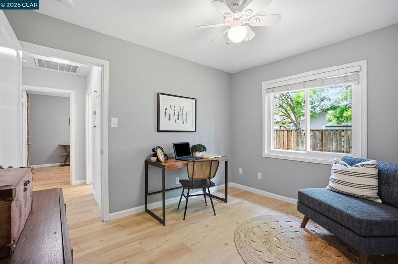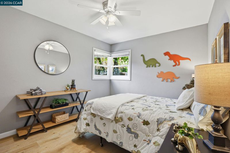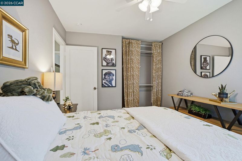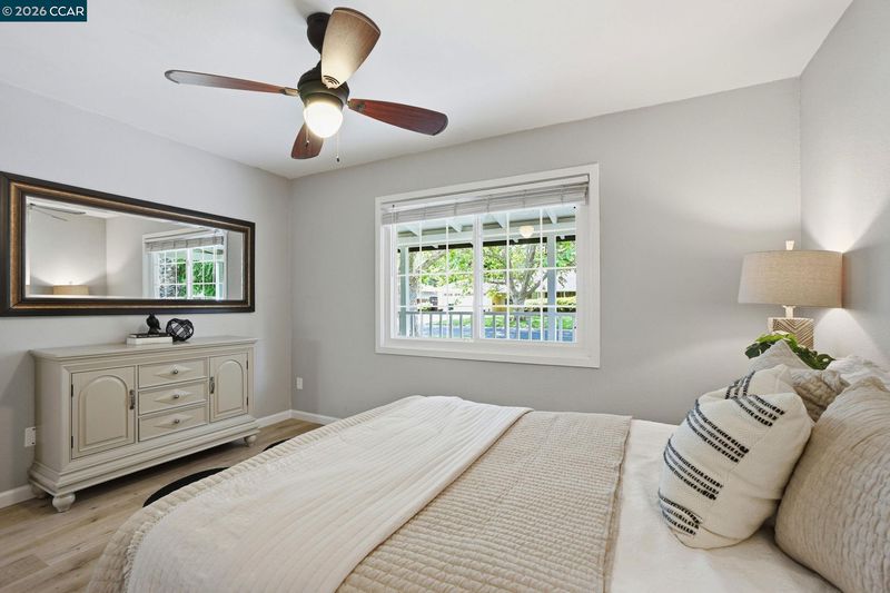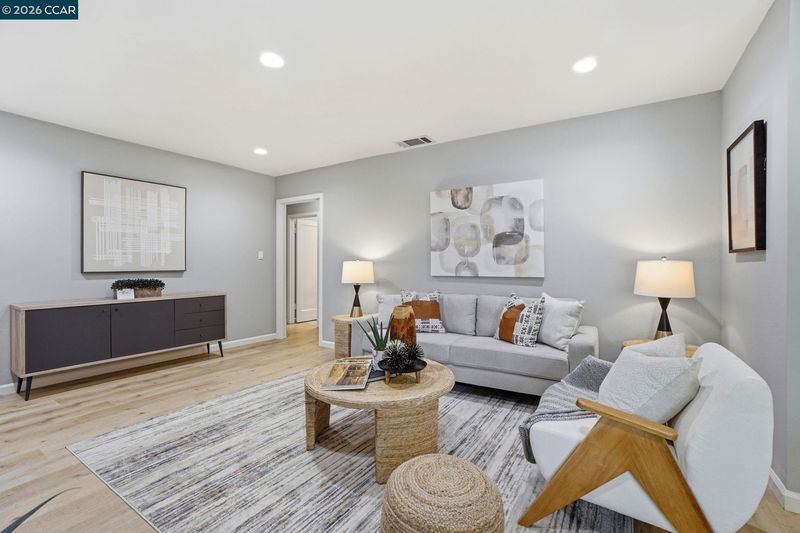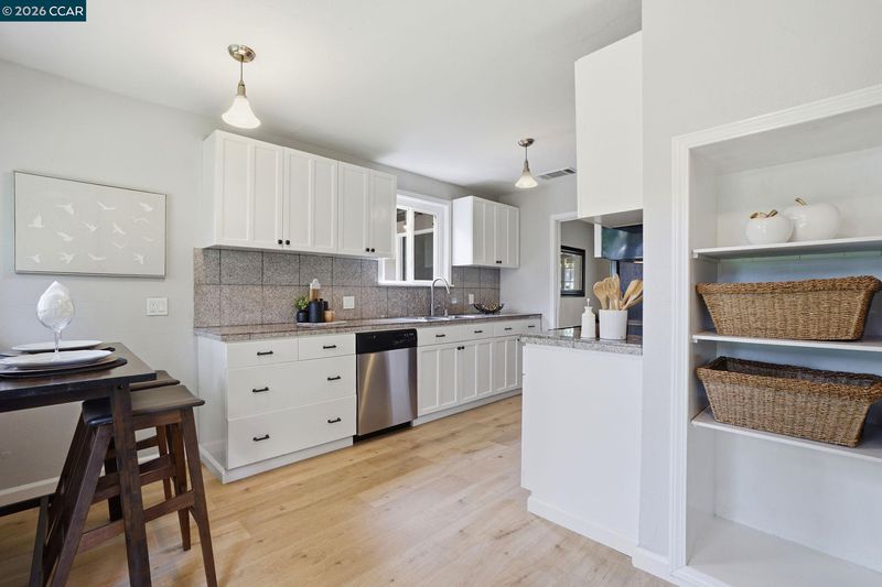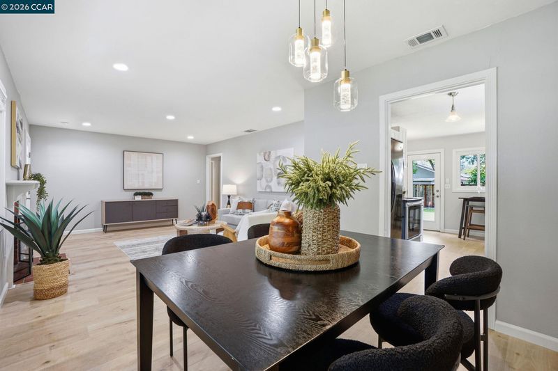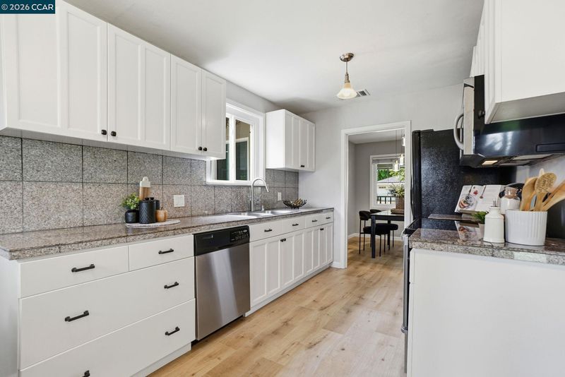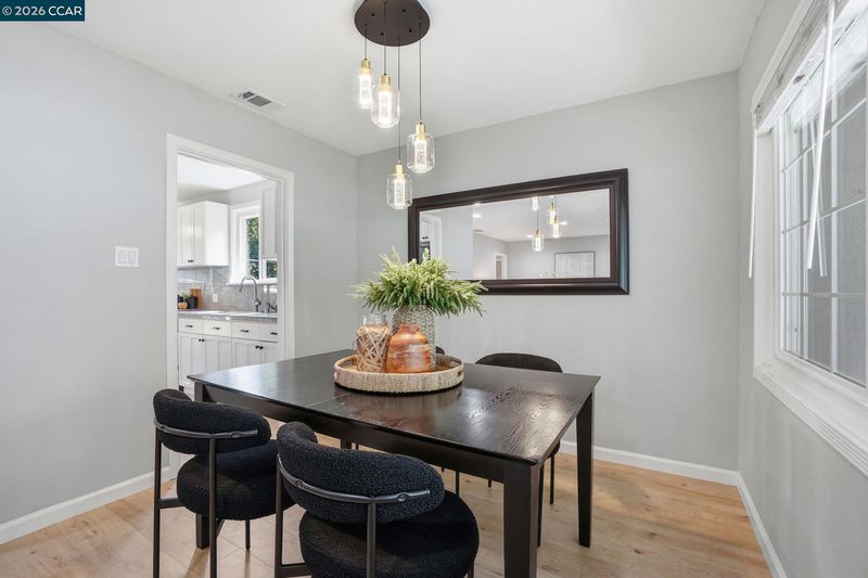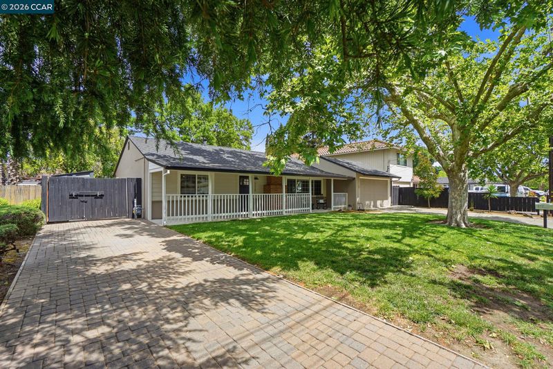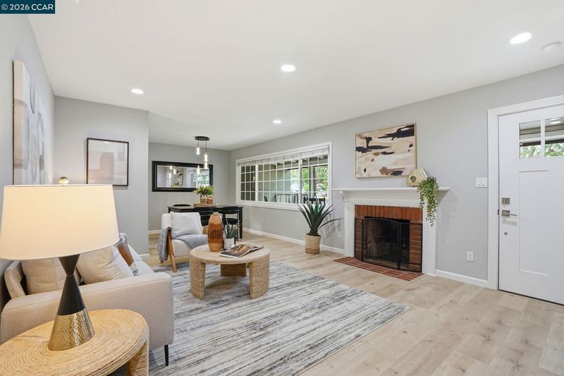 Stunning curb appeal with a classic white-railed porch and a spacious pavered driveway—perfect for your vehicles and RV. Nestled in the highly sought-after Gregory Gardens neighborhood, this home is just minutes from the vibrant heart of downtown Pleasant Hill. Step inside to find sun-drenched interiors complemented by warm light-wood flooring and a classic brick fireplace that anchors the living space with character. The seamless flow between the living and dining areas leads into a stunning kitchen, where natural light illuminates white shaker cabinets and a premium stainless steel appliance suite. Enjoy your morning coffee at the breakfast bar while gazing out at the peaceful, expansive backyard. Dual-pane windows in every room for year-round efficiency. Each of the three spacious bedrooms is equipped with stylish ceiling fans for a gentle breeze. Relax in the spa-like bathroom, which boasts a deep soaking tub and meticulously designed beveled-edge subway tile. Outside, the low-maintenance backyard and paved patio offer a private sanctuary for entertaining. Complete with a double gate for secure RV parking and access to top-rated schools, this home is the perfect blend of style and convenience. Open to public this Sunday May 3 1~4 pm!