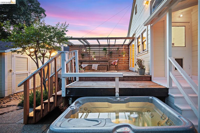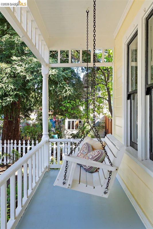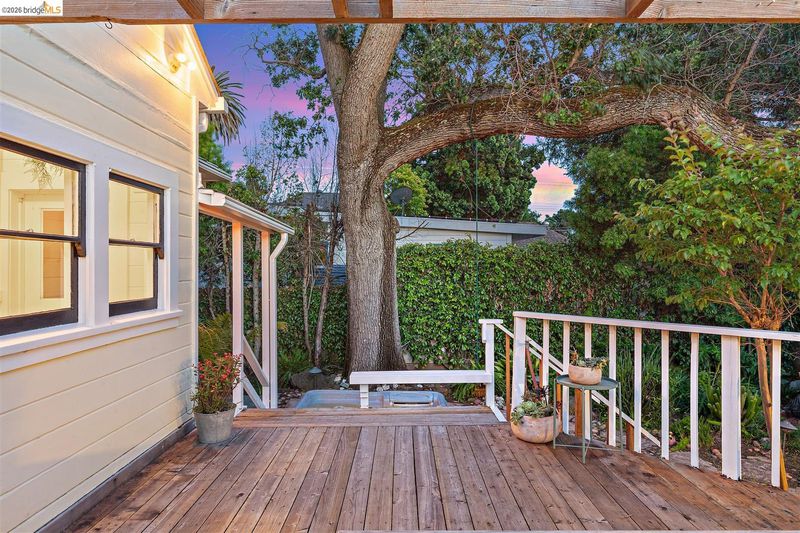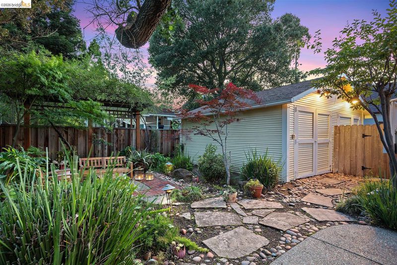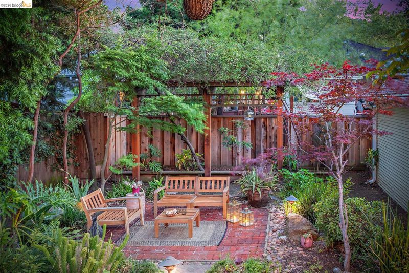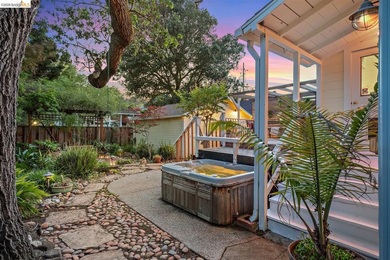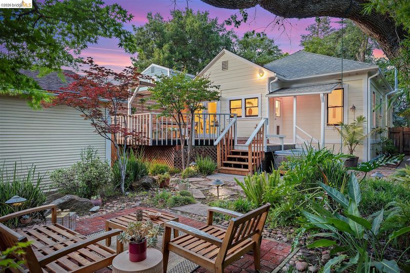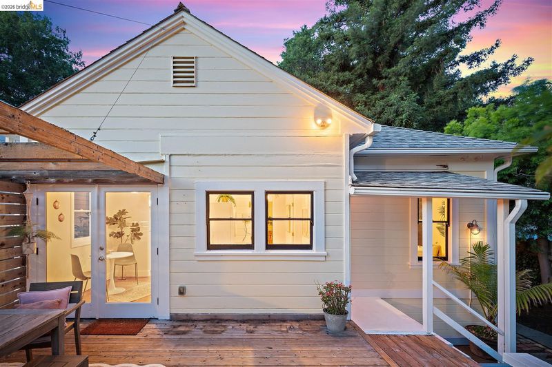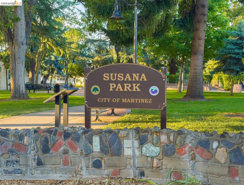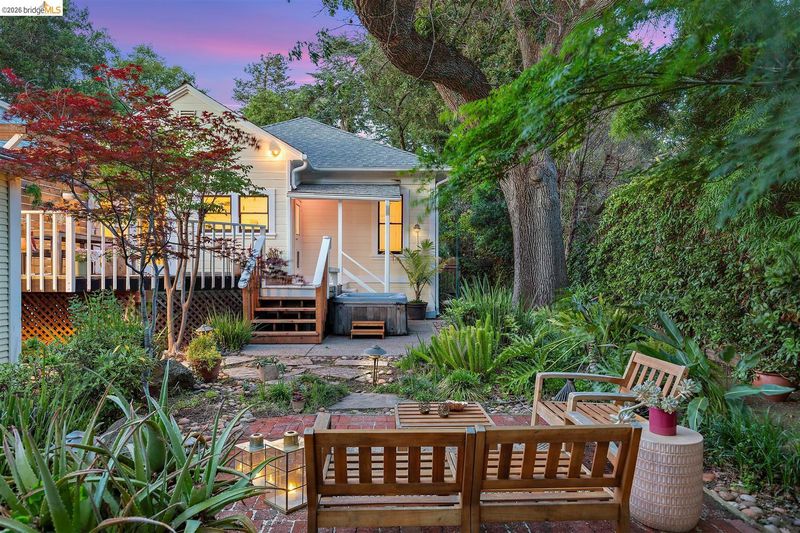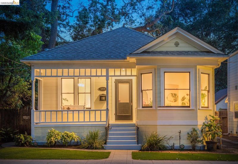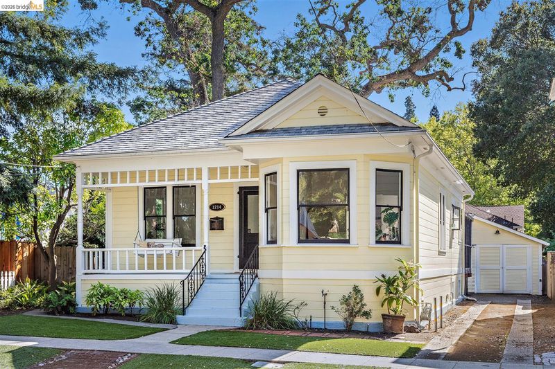 Step into a piece of Americana at 1214 Estudillo Street, a thoughtfully renovated 1904 Victorian cottage overlooking Susana Park. A classic front porch with swing introduces a light filled interior with hardwood floors and a picture window framing park views. The fully renovated and permitted kitchen features marble countertops, custom wood cabinetry, primarily stainless steel appliances, refined architectural cutouts, a skylight, and a large island that flows into the dining area. A sunlit breakfast nook with terracotta tile opens directly to the deck, creating an easy indoor outdoor connection. Matching terracotta continues through the mudroom. The main level includes two bedrooms and one full bathroom, including one bedroom with a large walk in closet. The backyard offers a private, landscaped setting with mature plantings, Japanese maples, a 100 plus year old oak tree with swing, a brick dining patio shaded by a newly rebuilt redwood trellis, multiple seating areas, and a hot tub. A detached two car garage with electrical outlets provides a workshop, significant storage, convenience and potential for future ADU conversion (buyer to verify), together with a clean partial basement for additional storage. Located just four blocks from downtown Martinez, with easy access to shops, schools, cafes, restaurants, the Amtrak station, and the weekly farmers market, with the added charm of nearby church bells from St. Catherine’s Church.