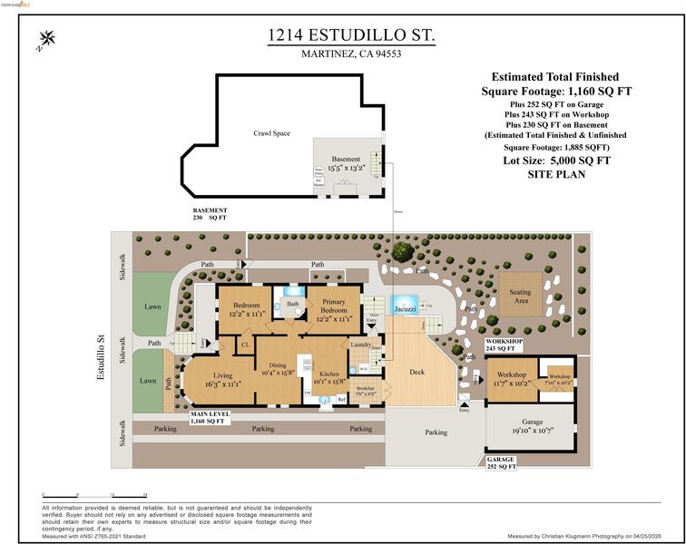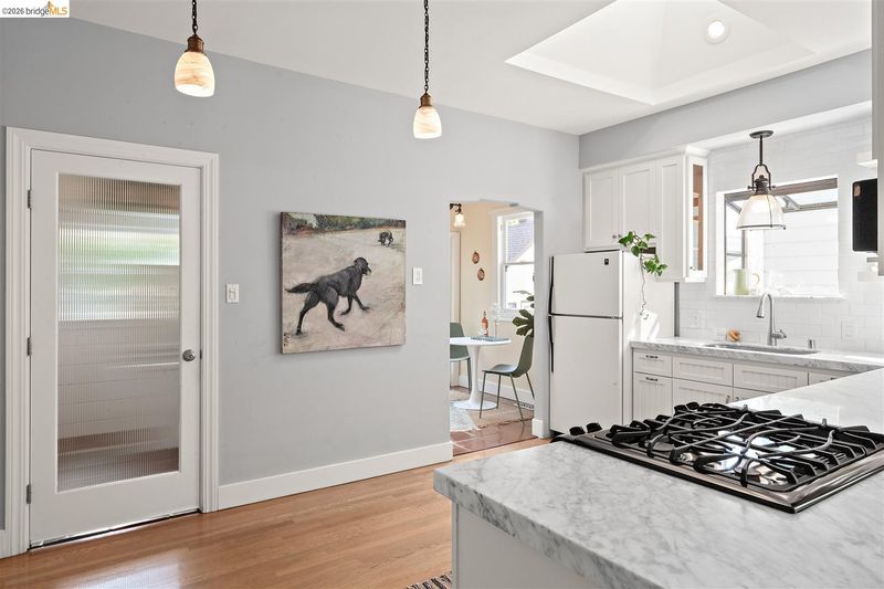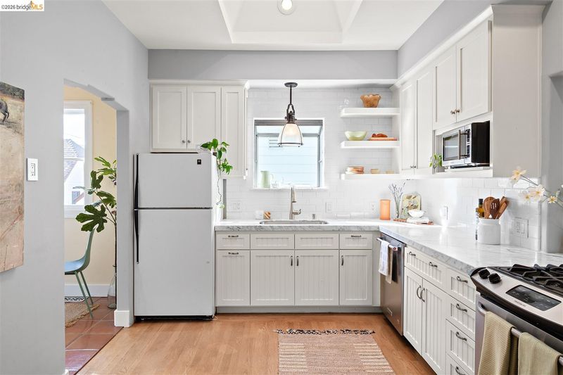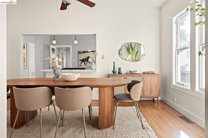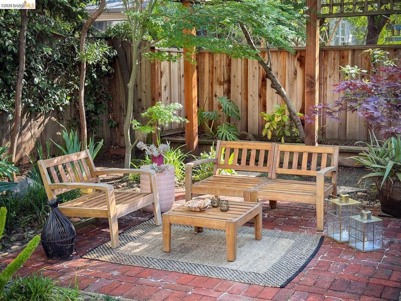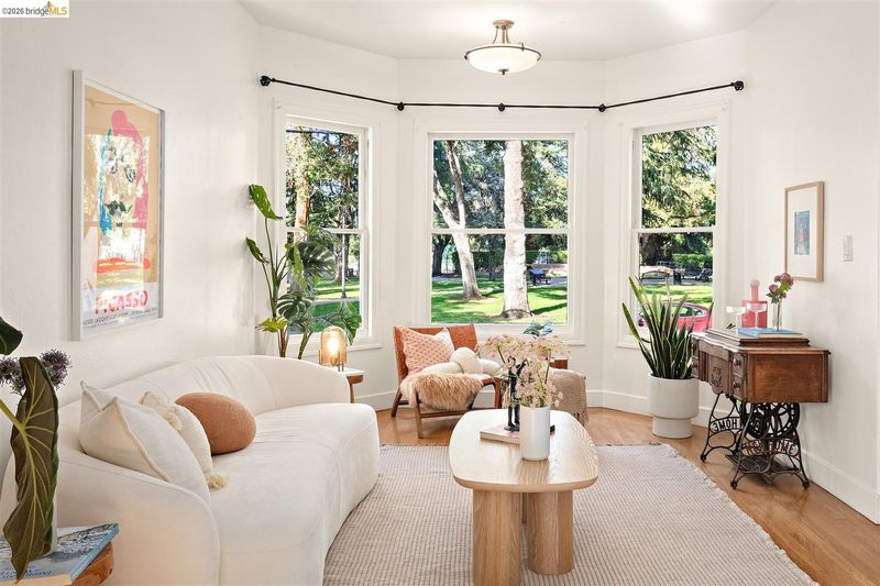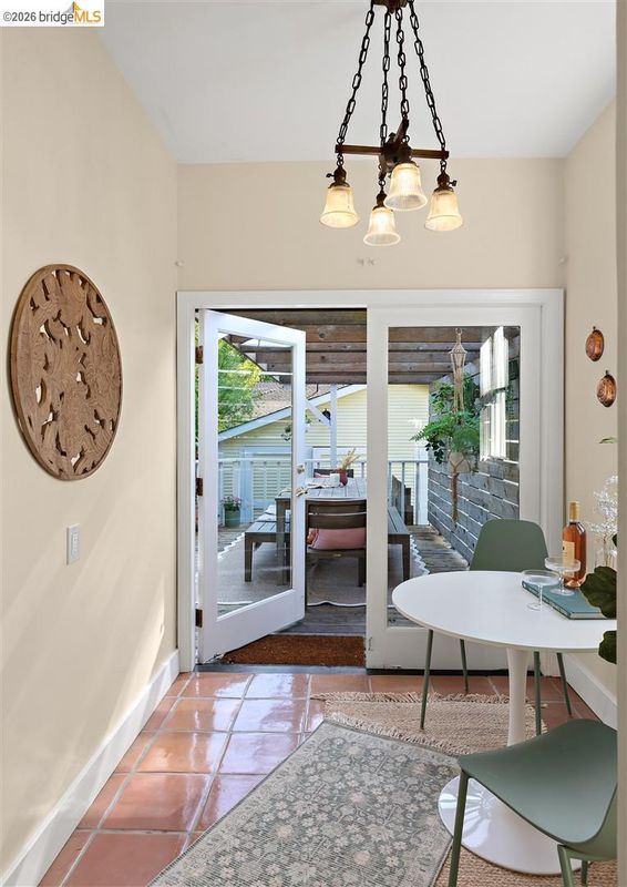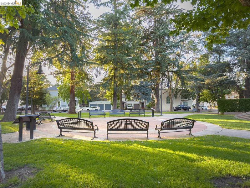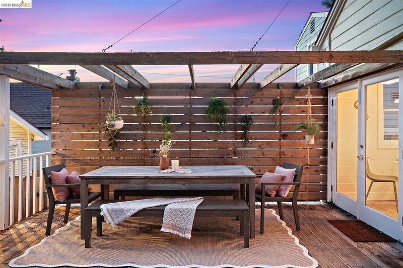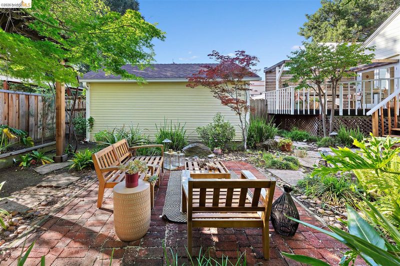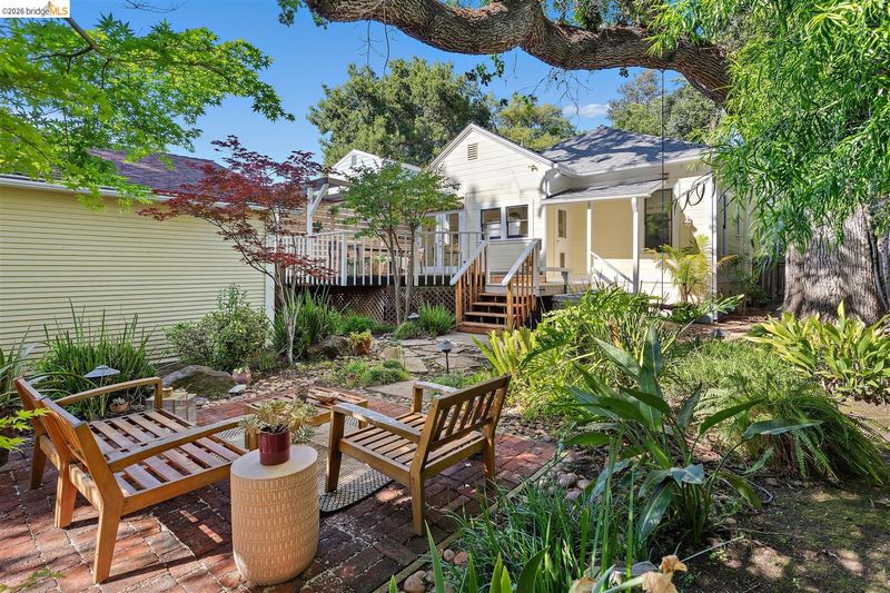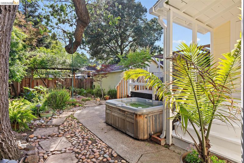 Step into a piece of Americana at 1214 Estudillo Street, a thoughtfully renovated 1904 Victorian cottage overlooking Susana Park. A classic front porch with swing introduces a light filled interior with hardwood floors and a picture window framing park views. The fully renovated and permitted kitchen features marble countertops, custom wood cabinetry, primarily stainless steel appliances, refined architectural cutouts, a skylight, and a large island that flows into the dining area. A sunlit breakfast nook with terracotta tile opens directly to the deck, creating an easy indoor outdoor connection. Matching terracotta continues through the mudroom. The main level includes two bedrooms and one full bathroom, including one bedroom with a large walk in closet. The backyard offers a private, landscaped setting with mature plantings, Japanese maples, a 100 plus year old oak tree with swing, a brick dining patio shaded by a newly rebuilt redwood trellis, multiple seating areas, and a hot tub. A detached two car garage with electrical outlets provides a workshop, significant storage, convenience and potential for future ADU conversion (buyer to verify), together with a clean partial basement for additional storage. Located just four blocks from downtown Martinez, with easy access to shops, schools, cafes, restaurants, the Amtrak station, and the weekly farmers market, with the added charm of nearby church bells from St. Catherine’s Church.