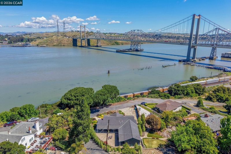 Exceptional waterviews! .59 acres. Waterfront location on private road. Perfect balance of privacy and connectivity. Enjoy the twinkling lights of the iconic Carquinez Bridge, access to East Bay Regional Parks District to enjoy cycling, biking, and hiking trails. Live close to nature without sacrificing urban accessibility. Situated near dining, artist studios, business district, public transportation. Commuters will appreciate the close proximity to major freeways. Centrally located in Contra Costa County. Features and Amenities: 3 bedrooms (includes master), 2 exceptionally updated full baths, Master Bath with spa-inspired, jetted soaking tub, heart of the home updated kitchen, quartz countertops, abundant cabinetry, ss appliances, living room with picture windows allow natural light and views. Cozy fireplace. Step out to front deck, French doors to patio, multi-level landscaped grounds and putting green. Hardwood floors. Spacious laundry room with washer and dryer, cabinetry. Freshly painted in and out, dual pane windows, HVAC. Irrigation system including patio hanging planter watering. Garage parking and off-street parking. Full Basement – flexibility – expansion potential. Includes washer/dryer area, kitchen sink and more! Storage, storage and more storage. Updated electrical and plumbing.