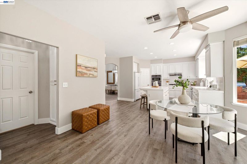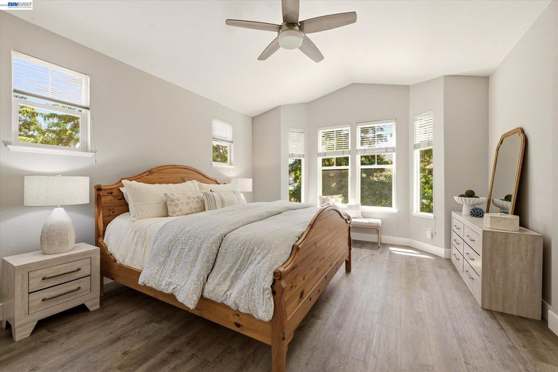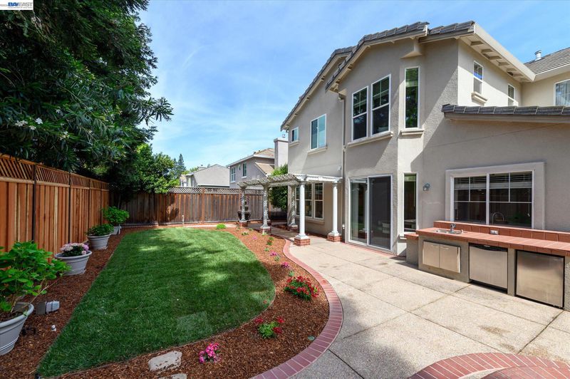 Fantastic east-facing four-bedroom, three-bath home situated directly across from the beautiful 6 acre Hansen Park and just a short walk to top-rated K–12 schools, downtown Pleasanton, and shopping. Enjoy easy commuter access to the 580/680 freeways. Inside, you’re greeted by abundant natural light, soaring 14-foot ceilings, new luxury vinyl flooring, and fresh paint. The eat-in kitchen boasts a breakfast bar, walk-in pantry, gas stove, dishwasher, built-in microwave, and refrigerator. The family room, with a gas fireplace, overlooks the private backyard. A full bedroom and bath on the main level provide flexibility, while the inside laundry includes a high-efficiency LG washer and dryer. Upstairs, the large primary suite offers an updated bath with a soaking tub, walk-in shower, dual vanities, and a walk-in closet. Two additional bedrooms share a Jack-and-Jill bath. The serene backyard, shaded by mature redwoods, includes a large patio, lawn, and outdoor kitchen with a dishwasher and refrigerator. Plus, new redwood fencing, florring lighting paint, HVAC, storage sheds, and a three-car garage with ample storage. This one will go fast, dont miss out!