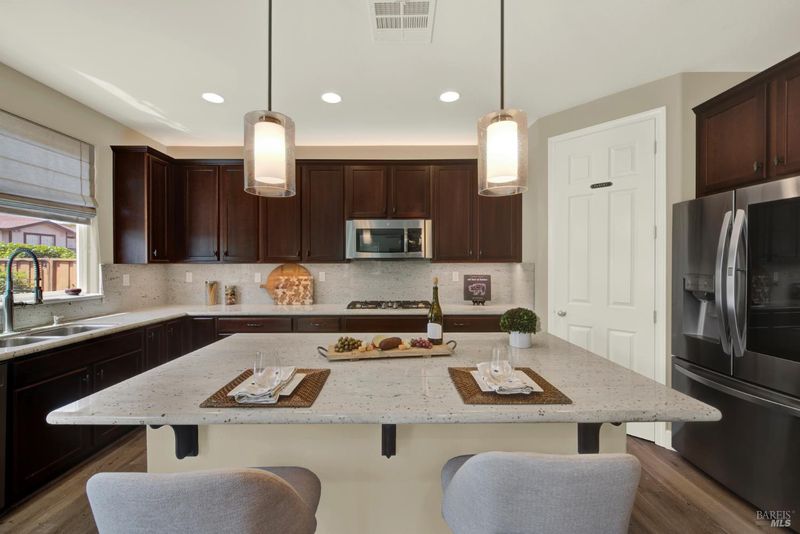 Hosted by Shawna Terry 707-3112-0375837 837 Erin Way is a Wine Country charmer with Craftsman-inspired curb appeal, a beautiful wraparound porch, and an ideal Napa location close to downtown. This 4-bedroom, 3-bath home with a flexible bonus room shows like a brand-new house and offers the warmth, style, and function today’s buyers want. At the heart of the home is a chef’s kitchen with warm, current wood cabinetry, granite countertops, stainless steel appliances, and views to the lush backyard oasis. Open to the great room with wood flooring, this space is perfect for everyday living and entertaining. The floor plan includes a main-level bedroom and full bath, ideal for guests, extended family, or a potential ensuite retreat. Upstairs, the spacious primary suite features dual sinks, a walk-in shower, soaking tub, and walk-in closet. The upstairs laundry room is finished with charming Pottery Barn-inspired details. The backyard feels like a private secret garden with mature landscaping, hot tub, fountain, remote-controlled covered dining area, and relaxing wine-country sitting spaces. Solar, an epoxy-finished garage floor, and close proximity to BottleRock, & downtown Napa