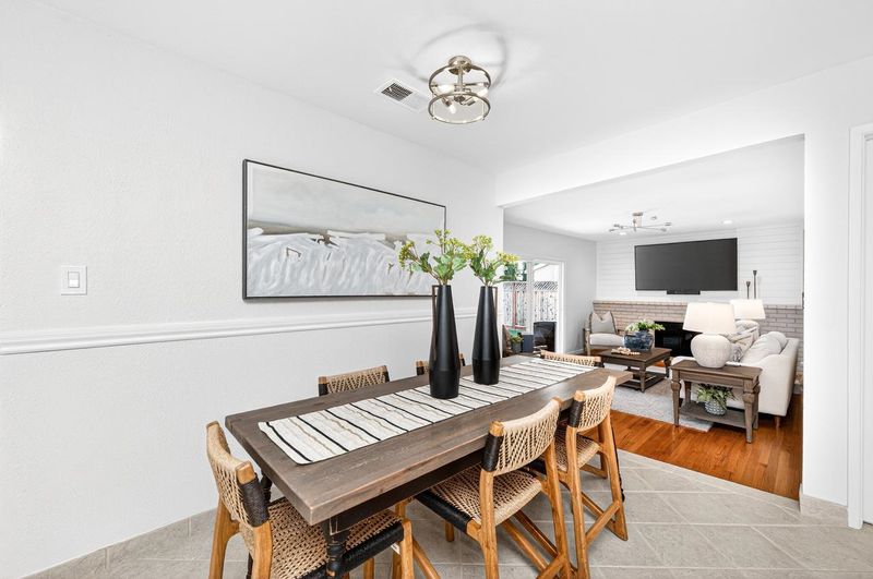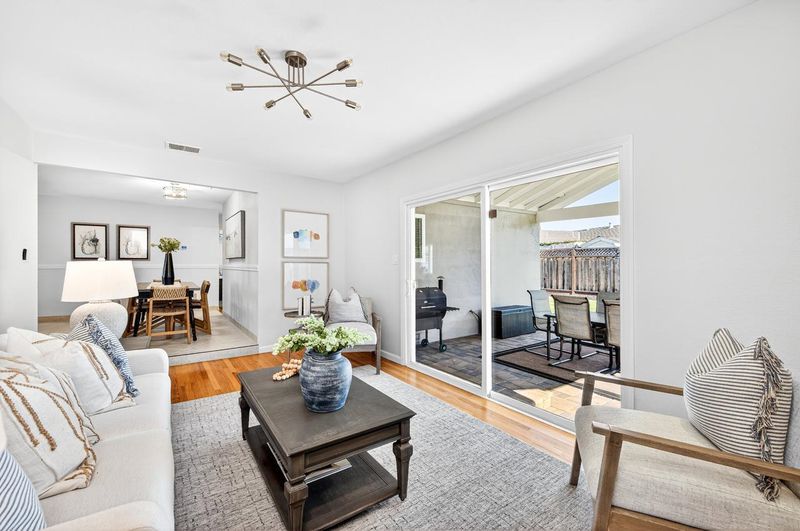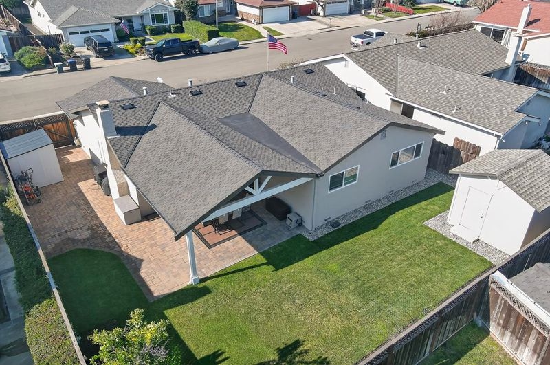 Pottery Barn Perfect......Beautifully maintained single-story home with fresh interior and exterior paint and thoughtful upgrades throughout. The remodeled kitchen shines with stone countertops, handsome cabinetry, tile floors, and a spacious dining area ideal for everyday living and entertaining. Cozy family room with shiplap fireplace opens to an exceptional outdoor retreat—an impressive, covered patio with a gabled roof and pavered patio, perfect for relaxing or hosting guests. The private primary suite features a remodeled bathroom with a walk-in shower, complemented by an updated hall bath with tile flooring. Additional highlights include a newer composition roof, pavered driveway, epoxied garage floor, updated fencing, landscaped backyard, large storage shed, and newer HVAC system. Just a short stroll to neighborhood parks, schools, and shopping. Walk to all three levels of award winning Pleasanton schools