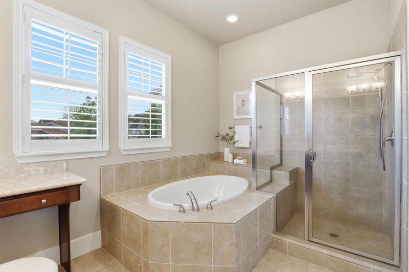 - Shower and Tub, Full on Ground Floor, Primary - Sunken Tub, Stall Shower - 2+