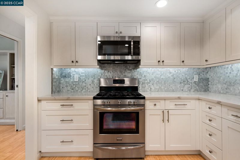 Gorgeous single story 3 bedroom home in highly coveted Rudgear Estates. Features include: dreamy high-end kitchen with beautiful counters, stylish cabinetry, custom backsplash, and updated stainless appliances, gleaming hardwood(bamboo) floors throughout the home, elegant vaulted ceilings in dining and living area, cozy fireplace, light-filled bedrooms, dual pane windows, plus a convenient interior laundry nook and 2 car garage. Don't miss the outdoor space perfect for relaxing or entertaining with modern stamped concrete hardscape, thoughtfully designed planting with lots of color, all overlooking the seasonal creek. Ideal and rare end location with easy access to side grassy area, feels very private! Amazing neighborhood comes with pool access, steps to tennis/pickle ball courts, parks, hiking trails, more! Within top rated school district. Enjoy the convenience to downtown Walnut Creek, but the serenity of one of the most premier neighborhoods-Rudgear Estates.