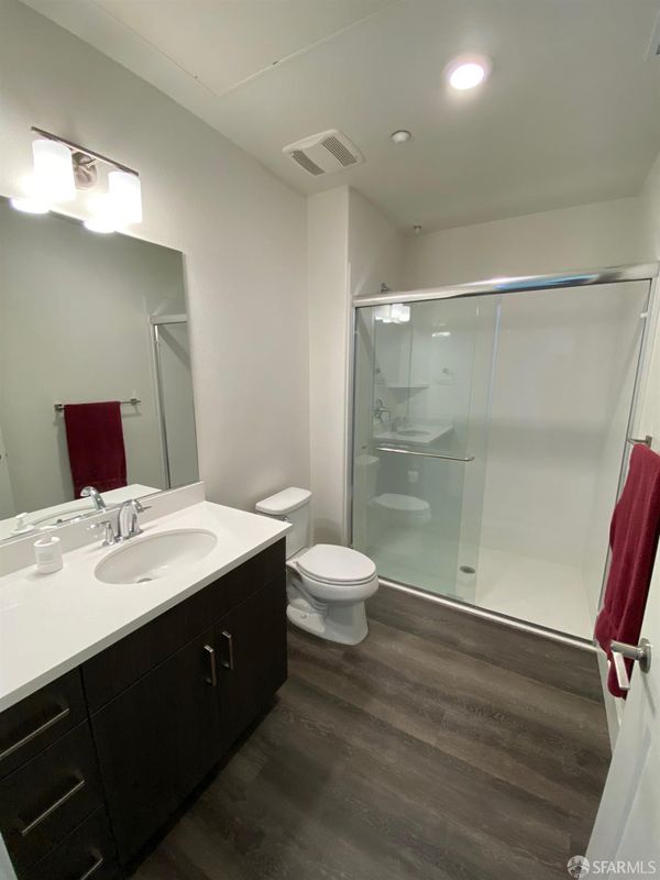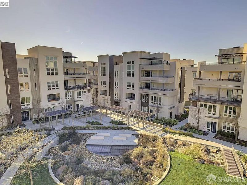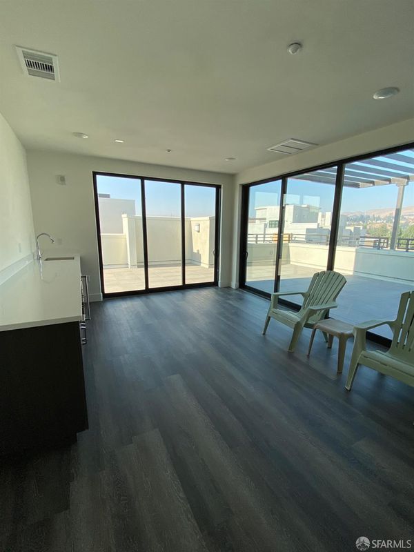 A rare penthouse retreat at Metro Crossing, this elegant 3-bedroom, 2.5-bath home with a loft offers soaring ceilings, abundant natural light, and two private outdoor spaces for relaxed, elevated living. Set on a premium lot and spanning the top floors of the building, it provides exceptional privacy along with stunning views of Mission Peak and the Bay. The open-concept layout features a modern kitchen with a large island, upgraded cabinetry, flooring, and countertops. Enjoy the wraparound balcony and rooftop terrace with a sleek fireplace, perfect for entertaining or unwinding. Additional highlights include a private two-car garage with an EV charger. Conveniently located across from Warm Springs BART and close to I-680 and I-880, with resort-style amenities including a pool, fitness center, clubhouse, and outdoor lounge areas. Please note that some images have been virtually staged for illustrative purposes only. Furniture and decor are not included.