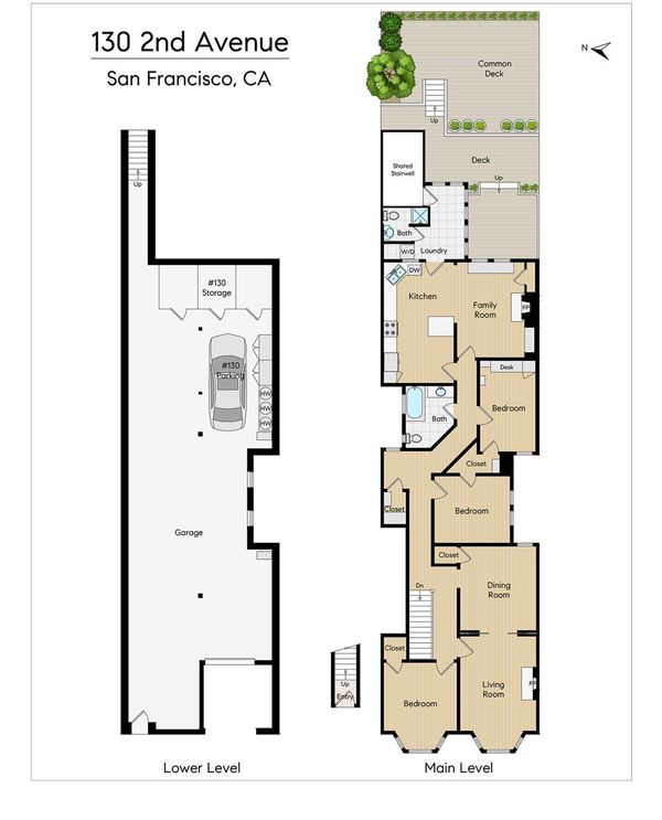 Victorian charm meets modern comfort in this spacious single-level condo in San Francisco's desirable Lake Street. Classic bay windows, high ceilings, hardwood floors, and architectural details offer timeless elegance throughout. The living room features plantation shutters and a decorative fireplace, flowing into a formal dining room ideal for entertaining. The updated kitchen includes a breakfast island, gas range, and stainless steel appliances, opening to a cozy family room with fireplace and window seat. Three bedrooms and two full bathrooms provide comfortable, flexible living. A light-filled back porch with laundry offers added function and common deck/garden access. Additional features include one-car garage parking, dedicated storage. Enjoy nearby access to the Presidio, Mountain Lake Park, Baker Beach, and the vibrant shops and dining along Clement St. Easy commute via Golden Gate Bridge and 19th Ave. Walk Score 94 Bike Score 83 Love where you Live.
