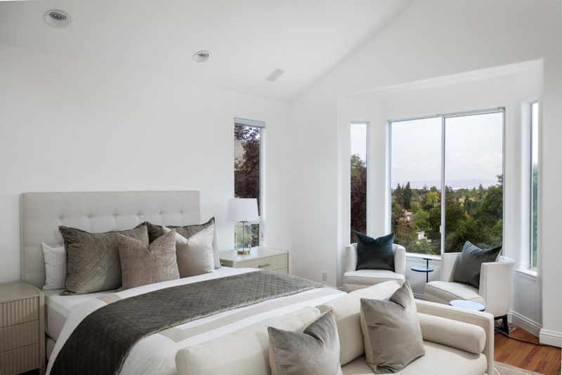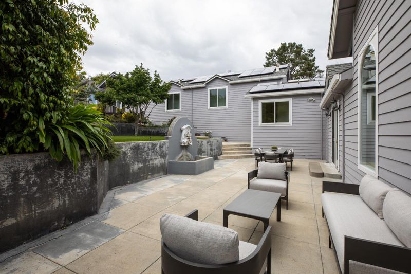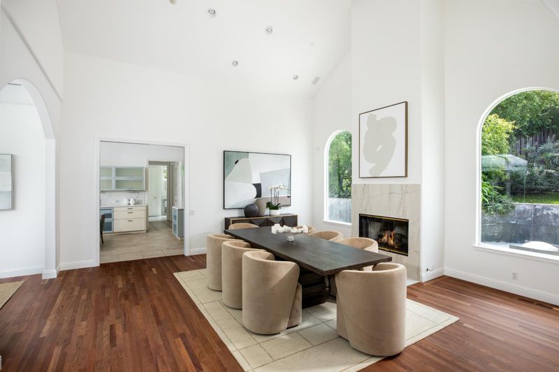 Designed for flexibility and scale, this expansive 5-bedroom, 6-bath property offers a rare layout with two distinct living areas connected within one cohesive design - ideal for extended family, long-term guests, or evolving lifestyle needs. East and west gated entrances offer added privacy. Towering ceilings and walls of glass define nearly every room, filling the interiors with natural light and framing sweeping western hill and East Bay views. The floor plan provides both grand entertaining spaces and more private retreats, all unified by fresh paint and fine hardwood floors. Set on approximately 1.1 acres with a pool, barbecue cabana, expansive decks, synthetic lawns, and two putting greens, this property offers a resort-like setting in a premier Country Club location.