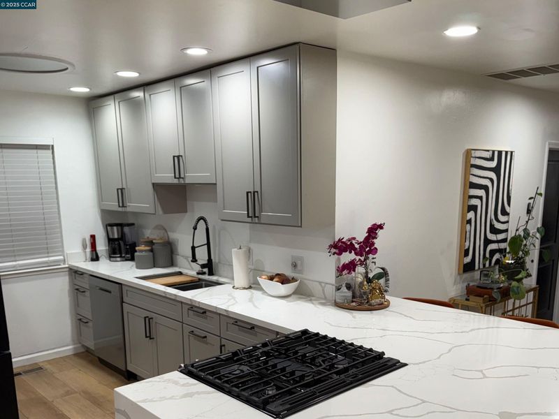 - Dishwasher, Gas Range, Refrigerator, Gas Water Heater, Counter - Solid Surface, Stone Counters, Eat-in Kitchen, Disposal, Gas Range/Cooktop, Updated Kitchen, Other