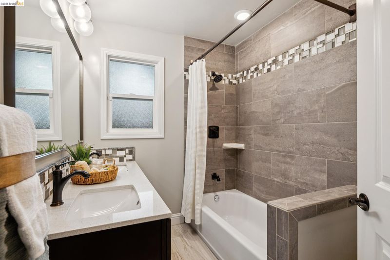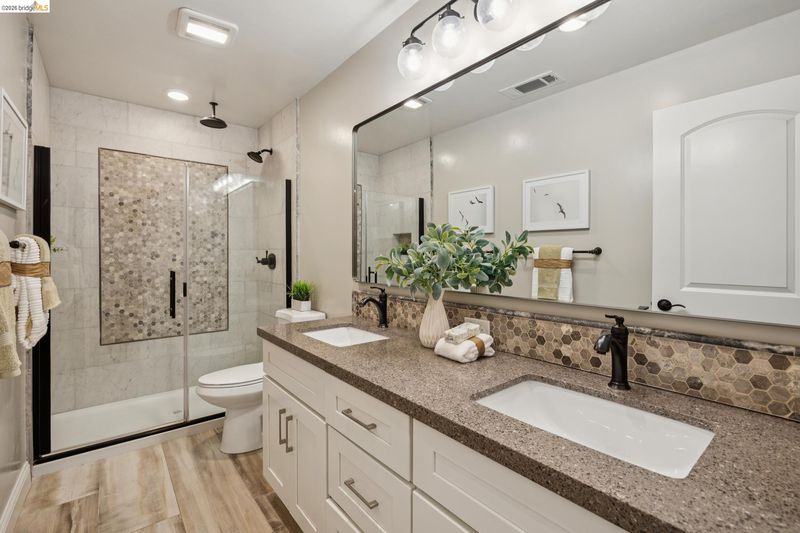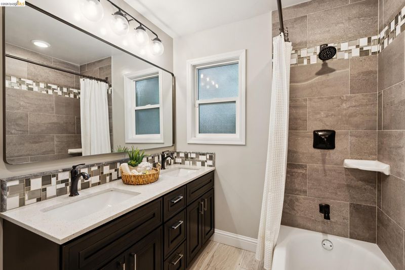 - Shower Over Tub, Tile, Updated Baths, Double Vanity