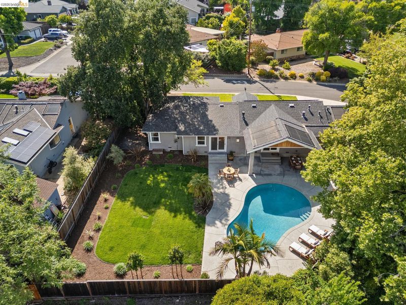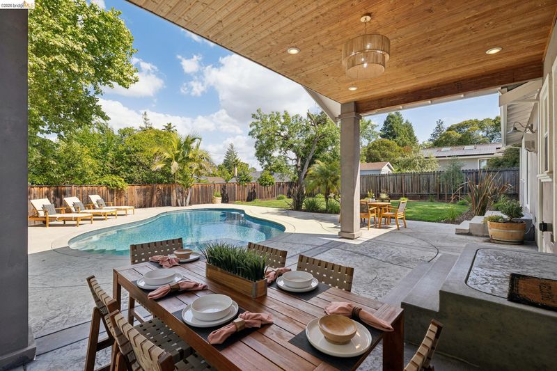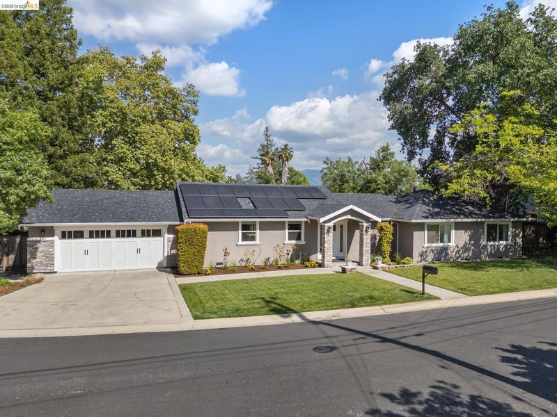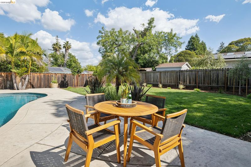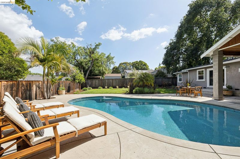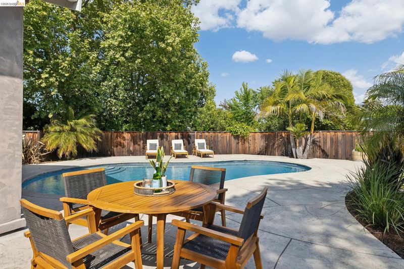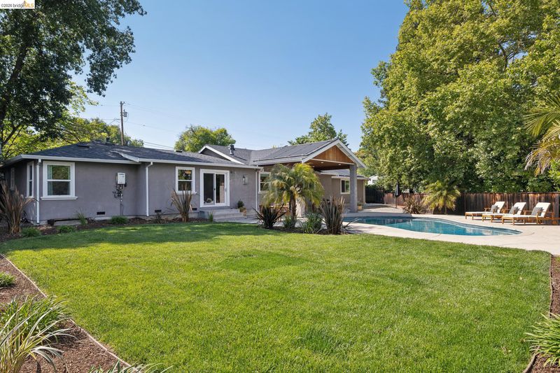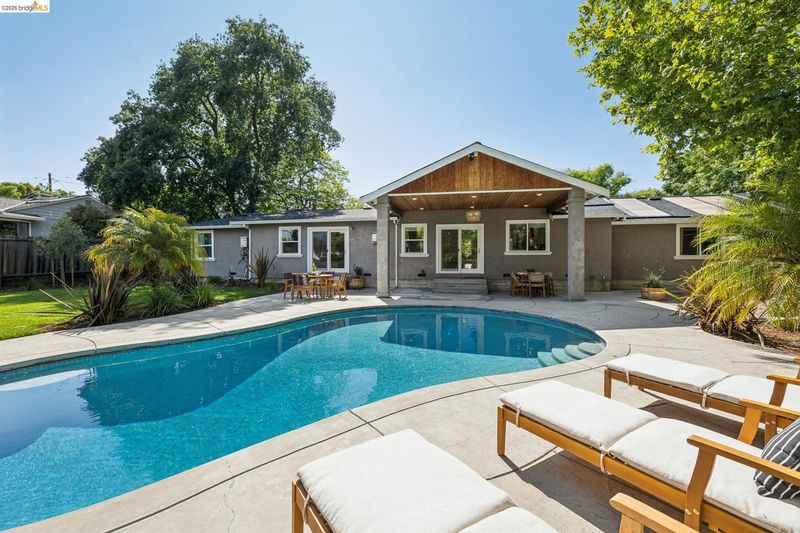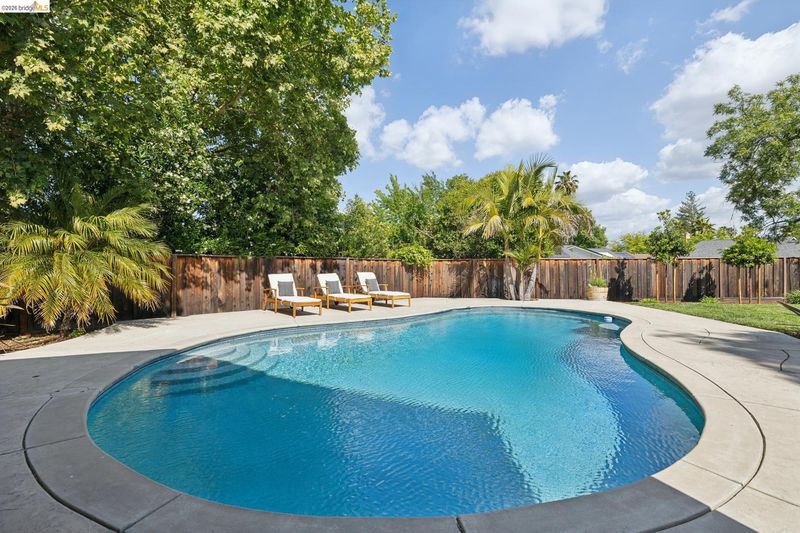 Your dream home awaits! This fabulous, updated home offers an inviting interior with outstanding layout – and a true backyard paradise with pool, lawn, ample patio space, and room to roam, play, BBQ, entertain, and eat outside all summer long! The chef's kitchen features a large island, 36" gas range, and huge walk-in pantry. The oversized primary retreat offers two closets, en-suite bathroom w/ double-sink vanity, fireplace, and sliding door to the backyard. Additional bedrooms are well located all together in the "bedroom wing" of the home, along with a spacious hall bathroom featuring another double-sink vanity. Off the kitchen you'll find a half-bathroom, spacious laundry room, and interior access to the large two-car garage. In addition to the two-car driveway in front of the garage, there's another driveway for RV, boat, or guest parking. Updates include newer plumbing, electric, tankless water heater, and roof; solar electric panels; solar water heating for the pool; and much more. Fabulous location close to neighborhood parks, Lunardi's Market, highways, and countless other amenities. Truly a special home, not to be missed!