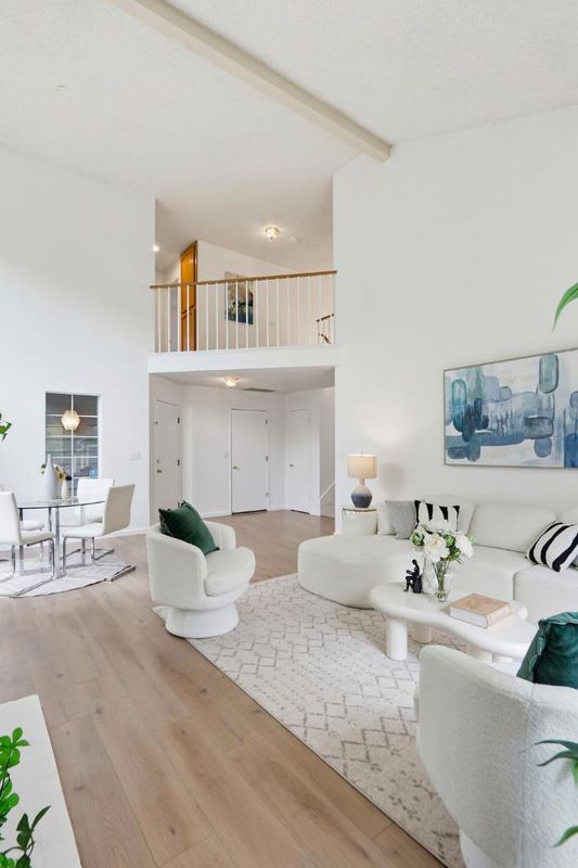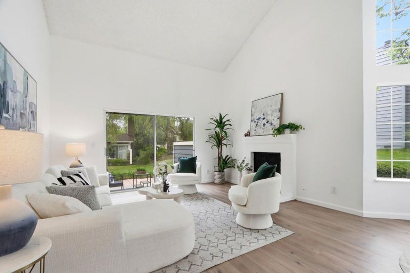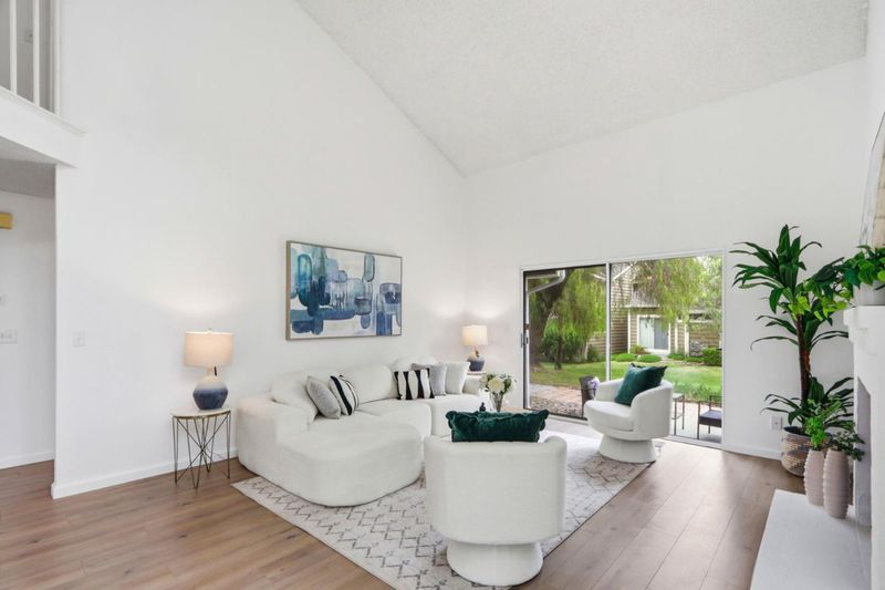 Prestigious California Ridge home nestled in a scenic rolling hill setting, surrounded by luxury custom residences. This desirable end-unit property offers the privacy and feel of a single-family home and is ideally situated on a quiet cul-de-sac adjacent to a greenbelt, with convenient guest parking nearby. Featuring 3 bedrooms and 2.5 bathrooms, this home showcases impressive high ceilings and a flexible, open floor plan. The space off the kitchen can be used as a dining area or cozy den, while the expansive living area allows for a combined living and dining layout. Sliding glass doors from both the living and dining areas open to a private patio overlooking a large green lawn, creating seamless indoor-outdoor living. Recent updates include fresh interior paint. Additional highlights include a 2-car attached garage and abundant natural light throughout. Located near Quicksilver Park and Almaden Lake, with easy access to shopping, dining, and major commute routes. Served by highly rated Almaden Valley schools, including Williams Elementary, Bret Harte Middle, and Leland High School.