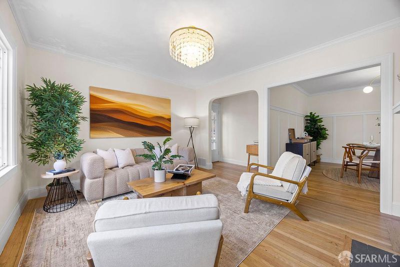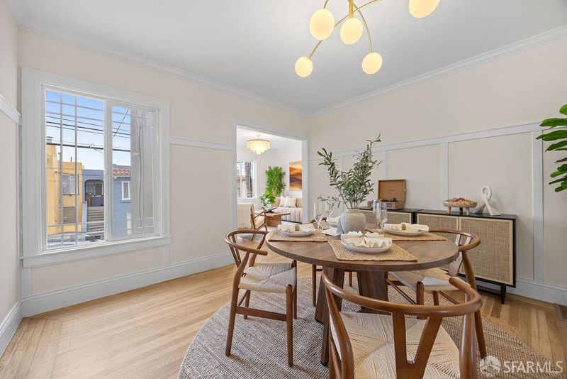 Nestled in San Francisco's vibrant Crocker-Amazon neighborhood along the Excelsior Corridor, this beautifully updated 3-bed, 2-bath home blends vintage charm with modern comfort across 1,515 sq. ft. of inviting living space. A freshly painted exterior opens to a bright interior with new light fixtures, fresh paint, and refinished hardwood floors. The spacious living room features crown molding, built-ins, and a cozy fireplace that flows into a formal dining room with classic wainscoting. The updated kitchen shines with quartz counters, a tile backsplash, and stainless steel appliances. A versatile sunroom provides the perfect home office or reading nook, leading to a refreshed deck and laundry area. Two bedrooms share a remodeled bath upstairs, while the flexible lower level includes a bedroom, bath, family room, and wet bar ideal for guests or extended living. Outside, enjoy a low-maintenance yard with new fencing, a patio, and thoughtful landscaping. A one-car garage completes this delightful home. Centrally located near Hwy 280, Balboa Park BART, Safeway, shops, dining, with San Bruno Mountain and McLaren Park trails, golf, and year-round Cow Palace events this Crocker-Amazon gem perfectly balances character, comfort, and convenience.
