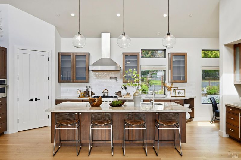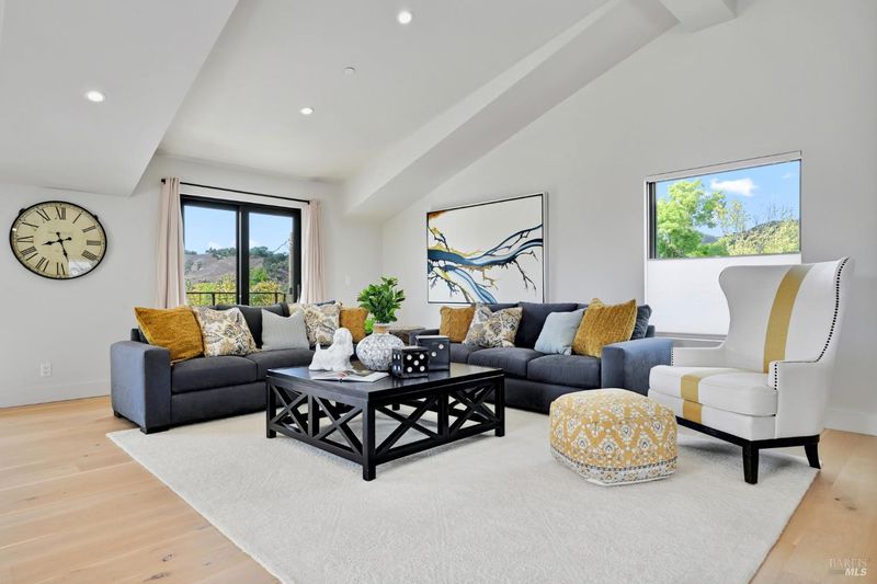 Discover the serene luxury of Riebli Valley...peaceful and rural, yet so close to fine dining, Oliver's Market, a performing arts center, golf, and beautiful regional and state parks. This impressive modern home offers an airy, open layout with tall doors and ceilings, attractive engineered wood flooring, and walls of black-framed windows that fill the space with natural light. The exceptional kitchen showcases quartzite countertops, Omega cabinetry, and premium appliances...ideal for both everyday living and entertaining. Primarily single level, the home also includes a spacious room upstairs for guests, a media and game room, or creative pursuits. Multiple decks invite outdoor enjoyment and feature lovely valley and hill views. The gently rolling setting offers space and sunlight for a possible hobby vineyard, garden, or other outdoor amenities. The oversized garage has room for a workshop and the ample parking is great for accommodating family or friends for large gatherings. This property gracefully captures the comfort, quality, and relaxed elegance of Sonoma County Wine Country living. Don't miss out on it!